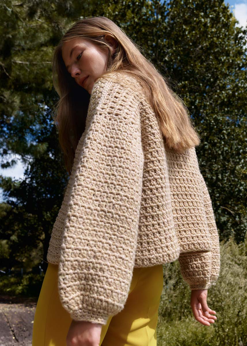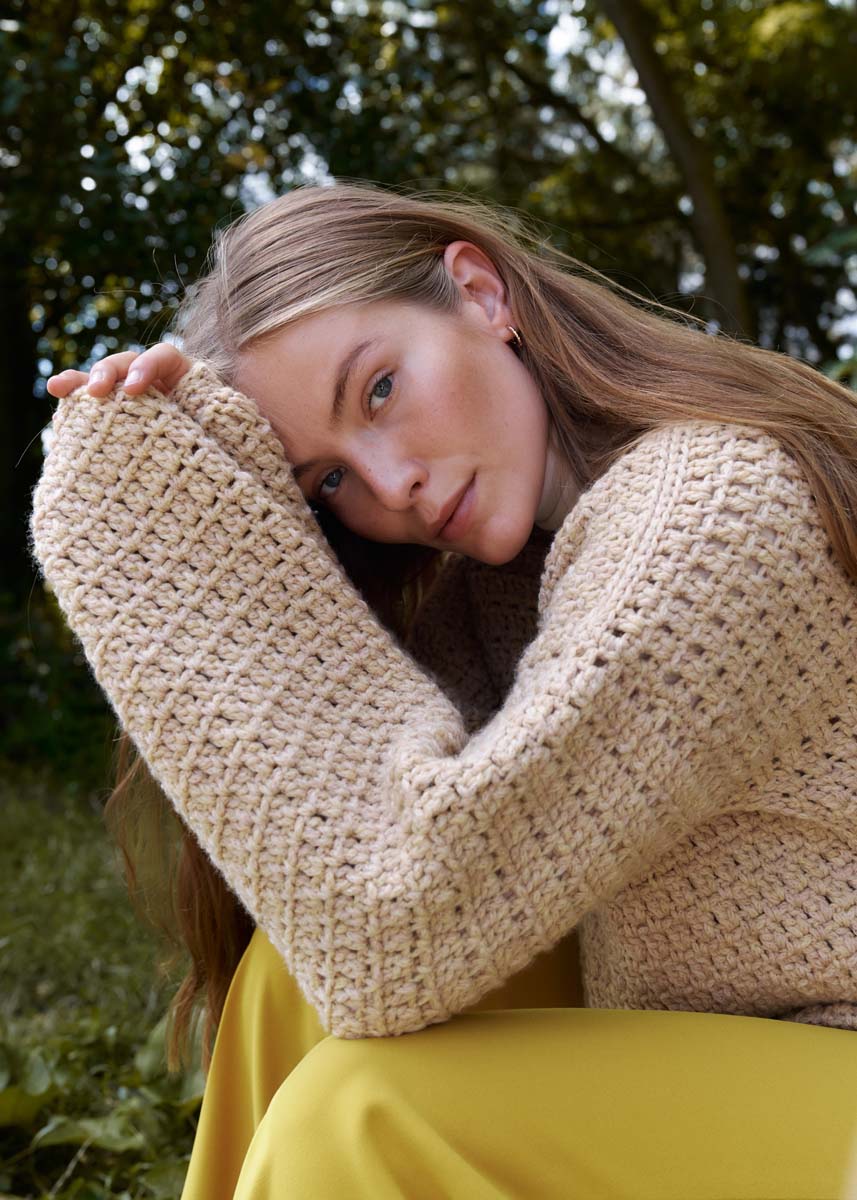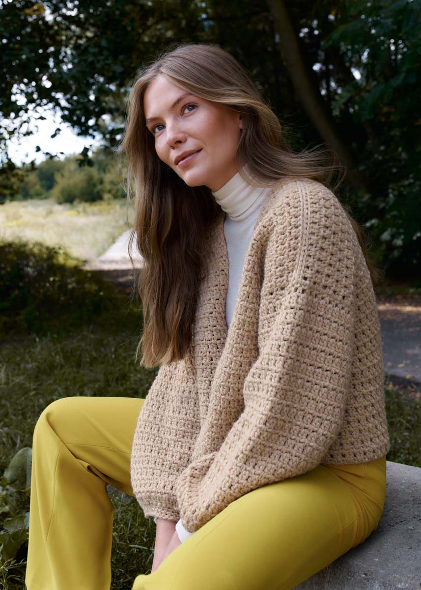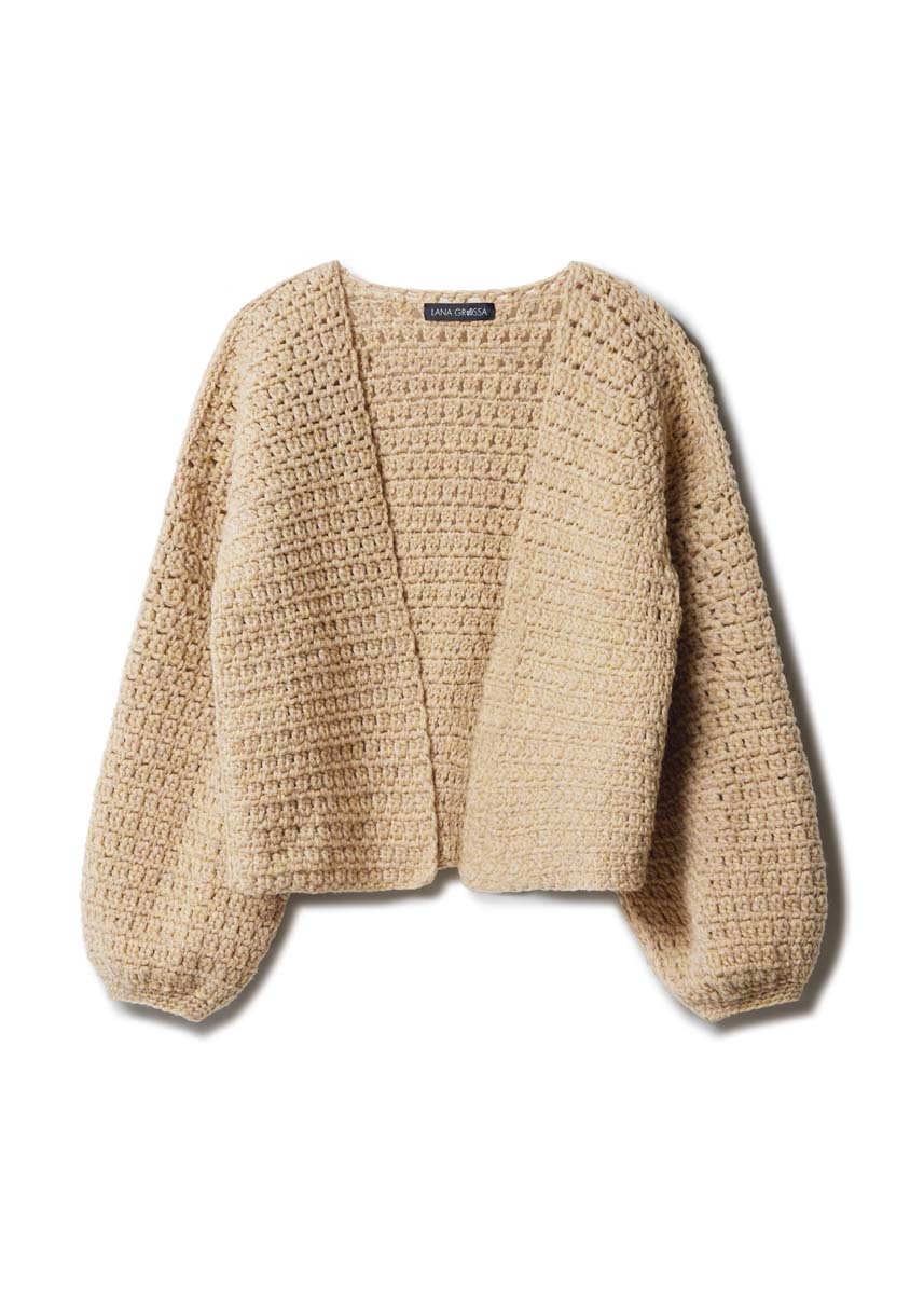 Lana Grossa Cool Merino Big (90% ren ny ull (merino), 10% polyamid, løpelengde 90 m/50 g), 650 (700 - 750) g beige (farge 223); 1 heklenål nr. 7.