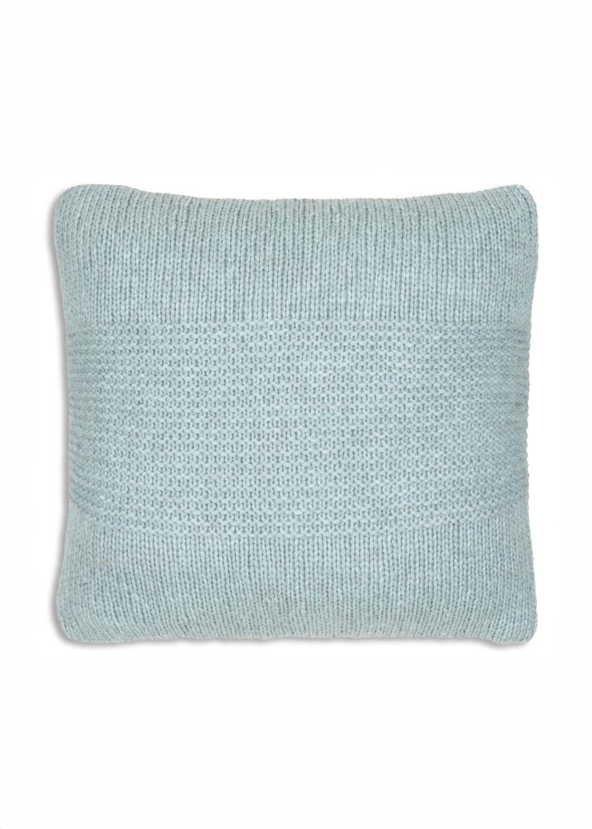 Lana Grossa-kvalitet „Alta Moda Cashmere 16” (78 % ren ny ull (merino), 12 % kashmir, 10 % polyamid, löplängd = ca. 110 m/50 g): ca. 250 g pastellblå (färg. 54); stickor nr. 7,5; 1 tvättbar kudde/kuddfyllning, 40 ggr 40 cm.