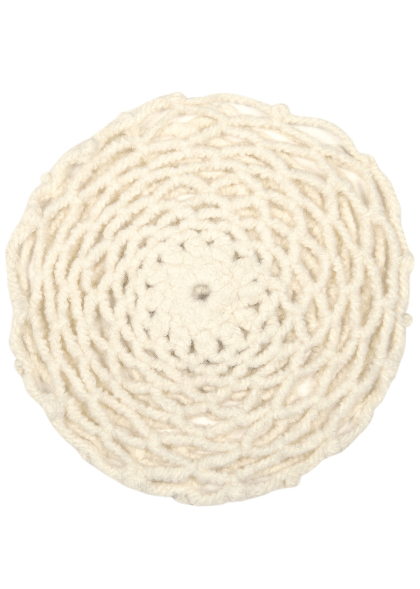 Material: Lana Grossa Feltro (100% ren ny ull, løpelengde 50 m/50 g), 150 g råhvit (farge 1); 1 heklenål nr. 6, 1 Putefylling, rund, Ø 30 cm.