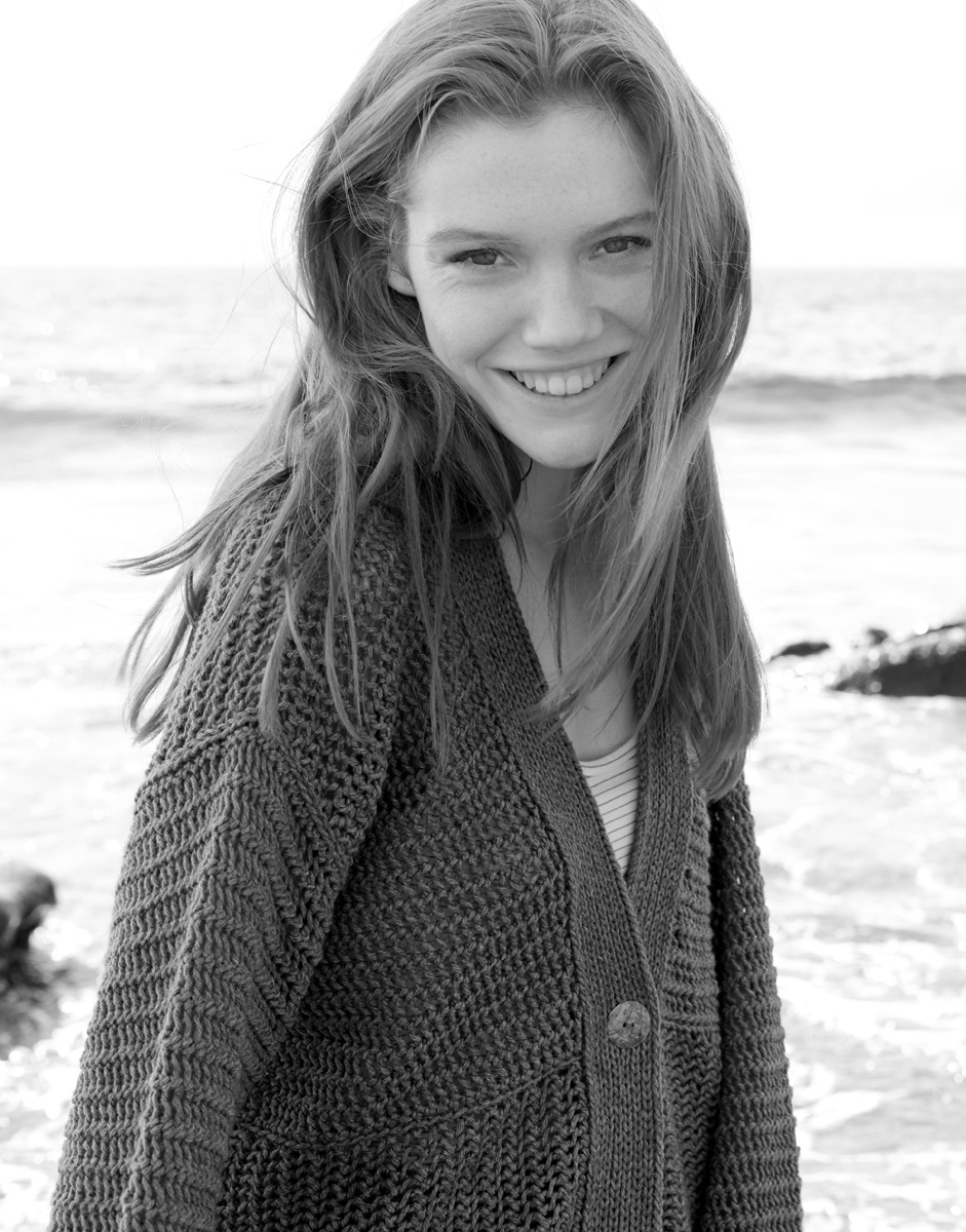 Lana Grossa-kvalitet ”Fourseason” (45 % virgin ull (extrafin merino), 40 % (bio) bomull, 15 % (rec.) kashmir löplängd = ca. 105 m / 50 gr.): ca. 450(500) gr jeans (färg 3), stickor nr. 3 och 5, rundsticka nr. 5, 80 cm, 1 pärlemorsknapp från UNION KNOPF, art. 452665, färg 60 jeans melerad, 28 mm Ø