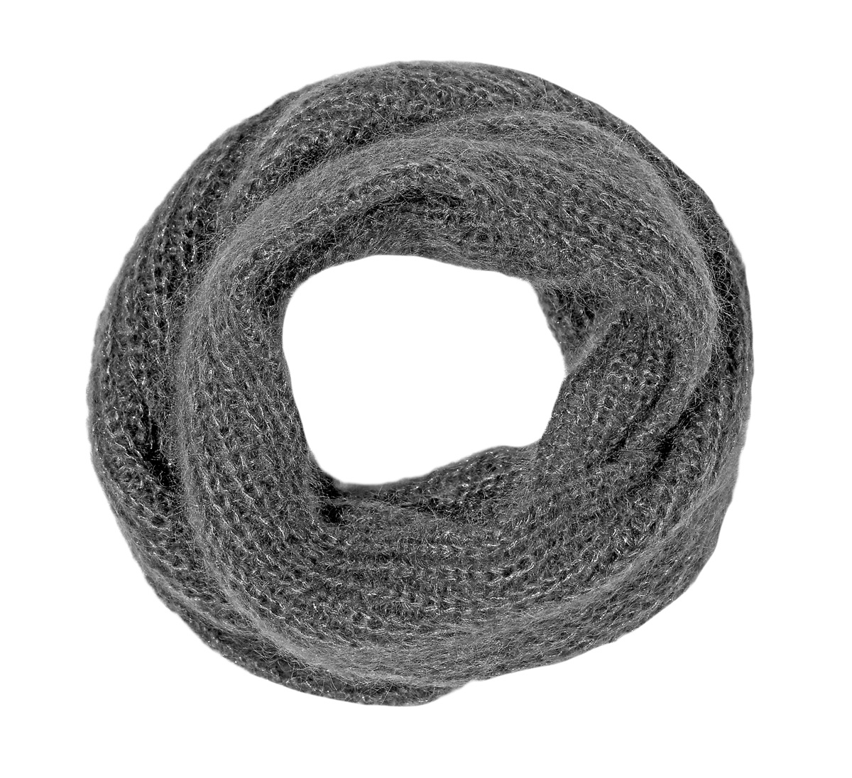 Lana Grossa-kvalitet „Silkhair“ (70% mohair superkid, 30% silke, löplängd = ca. 210 m/25 g), 75 g kanel (färg 124); Lana Grossa-kvalitet „Silkhair Lusso“ (78% mohair superkid, 14% silke, 4% polyester, 4% polyamid, löplängd = ca. 210 m/25 g), 75 g koppar (färg 922); stickor nr. 5