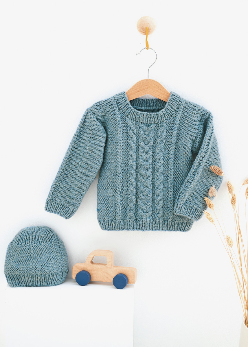 Er der kun oplyst ét tal, gælder dette alle størrelser. Materiale: Lana Grossa-kvalitet ”Alta Moda Alpaca” (90 % alpaka (baby), 5 % ren ny uld (merino), 5 % polyamid, løbelængde = ca. 140 m / 50 gr.): ca. 50 gr gråblå meleret (fv 60), strømpepinde nr. 5.