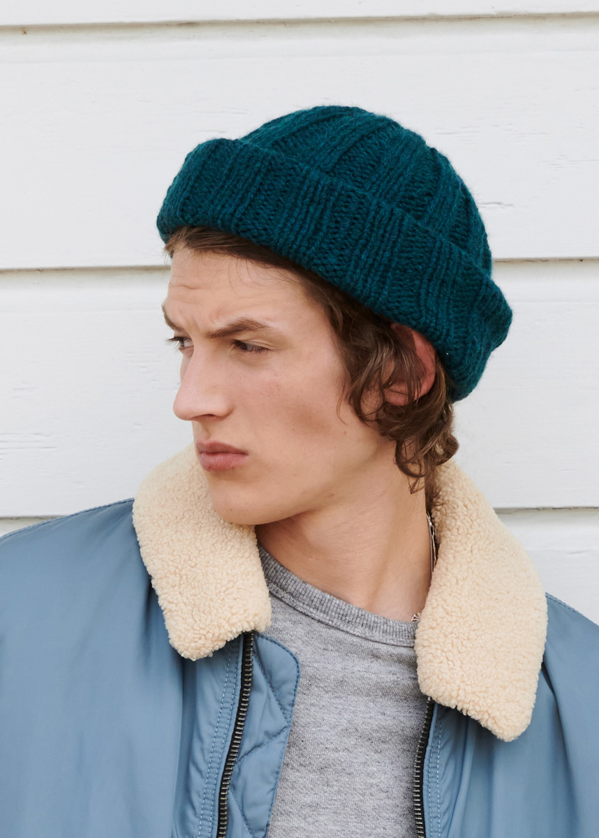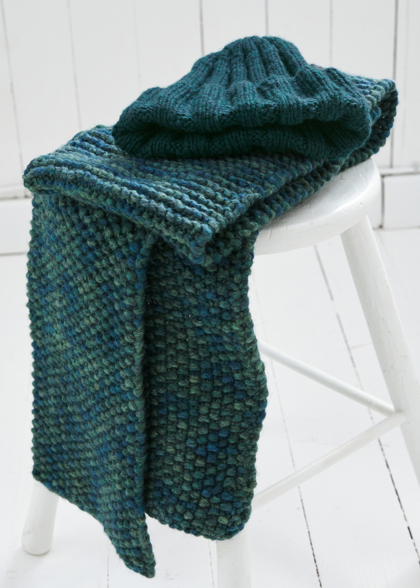 „Alta moda Cashmere 16“ från Lana Grossa (78 % ren ny ull (merino), 12 % kashmir, 10 % polyamid, löplängd = circa 110 meter/50 gram), circa 100 gram mörk petrol (färgnummer 37), 1 kort rundsticka nummer 5, längd 40–50 cm och/eller Strumpstickor nummer 5.
