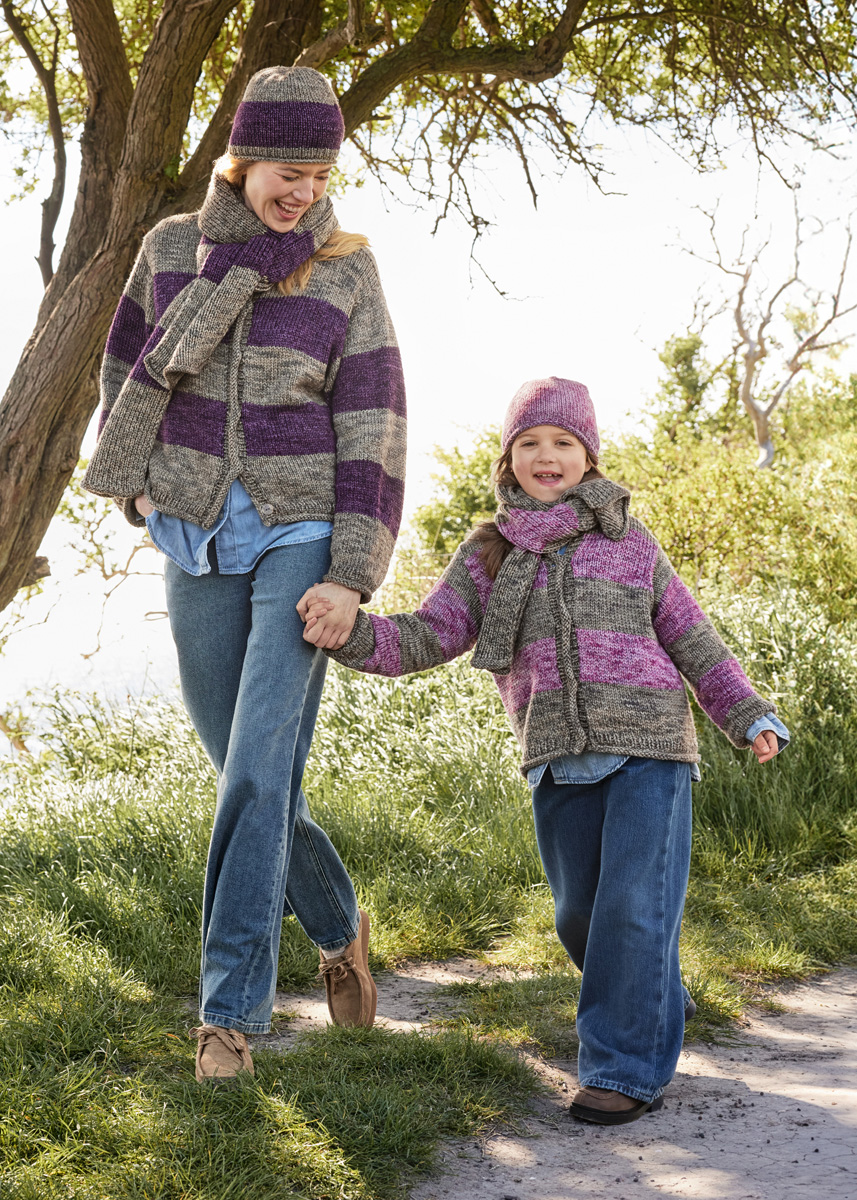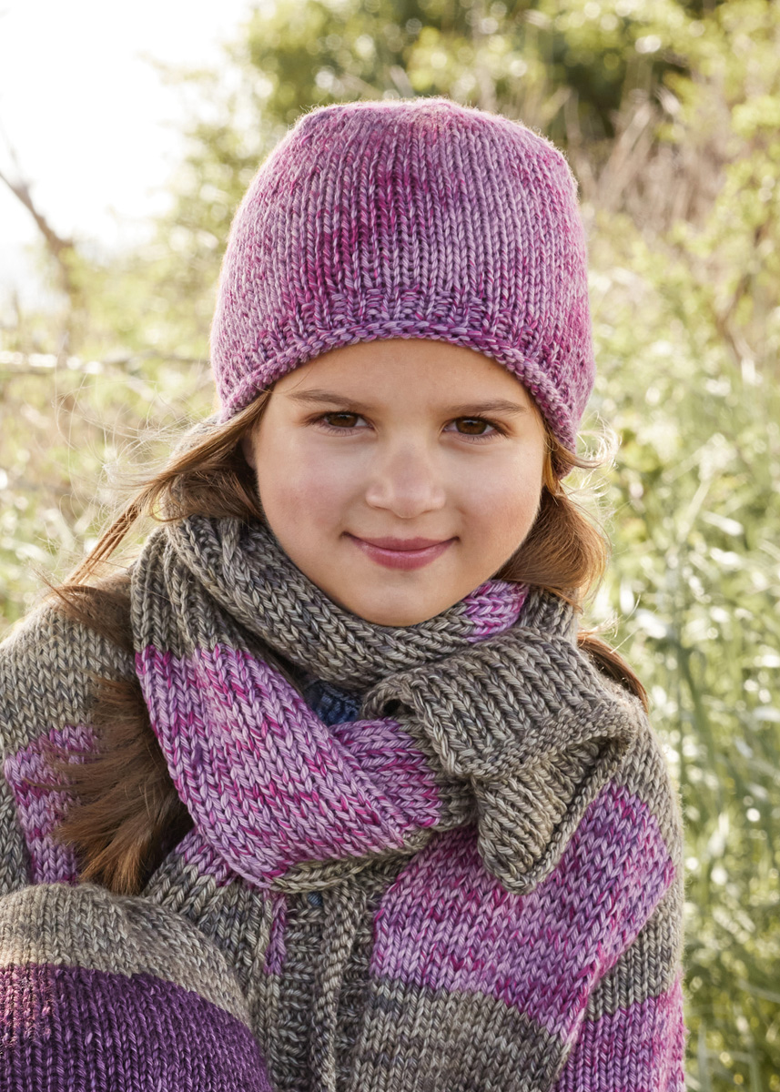 Lana Grossa Vintage Chunky (100 % ren ny ull (merino extrafine), LL = ca 80 m/50 g), 50 g gråbeige/mauve (frg 7) Pinner: Strømpepinner nr. 5 og 6 Tilbehør: 6 maskemarkører (MM)