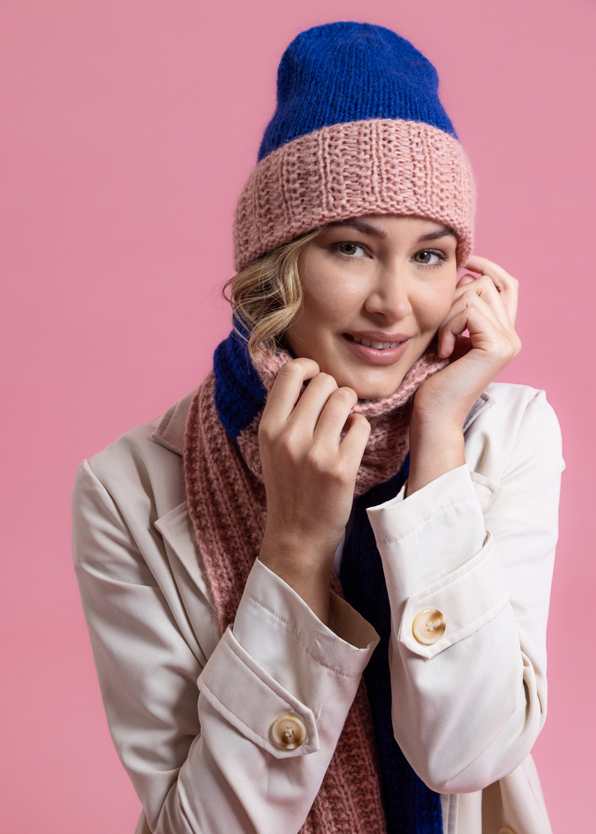 • 50 g bläckblå (färg 30) • 50 g persika (färg 55)
