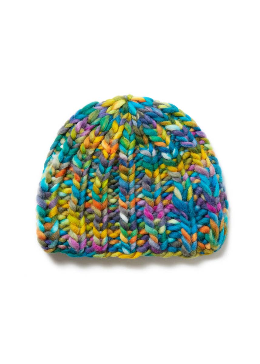 Lana Grossa-kvalitet „Confetti” (100 % ren ny ull (merino), löplängd = ca. 50 m/100 g): ca. 100 g vit/gulgrön/ oliv/jade/gul/violett/turkos/orange (färg 12); strumpstickor nr. 12.