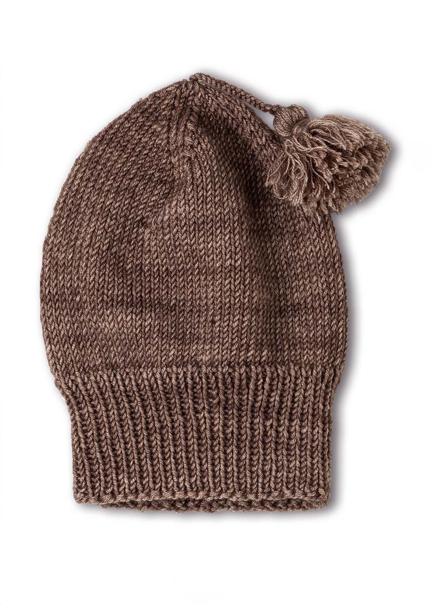 Lana Grossa Cool Wool Big Vintage (100 % ren ny uld (ekstrafin merino), løbelængde = ca. 120 m / 50 gr.): 50 (50 – 50 – 100) gr mørkebrun (fv 7184) og strømpepinde nr. 3½.