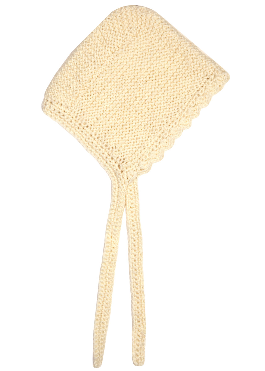Lana Grossa-kvalitet ”Cool Wool Cashmere” (90 % ren ny uld (ekstrafin merino), 10 % cashmere, løbelængde = ca. 160 m / 50 gr.): 50 gr råhvid (fv 12), strikkepinde nr. 3½, hæklenål nr. 3.