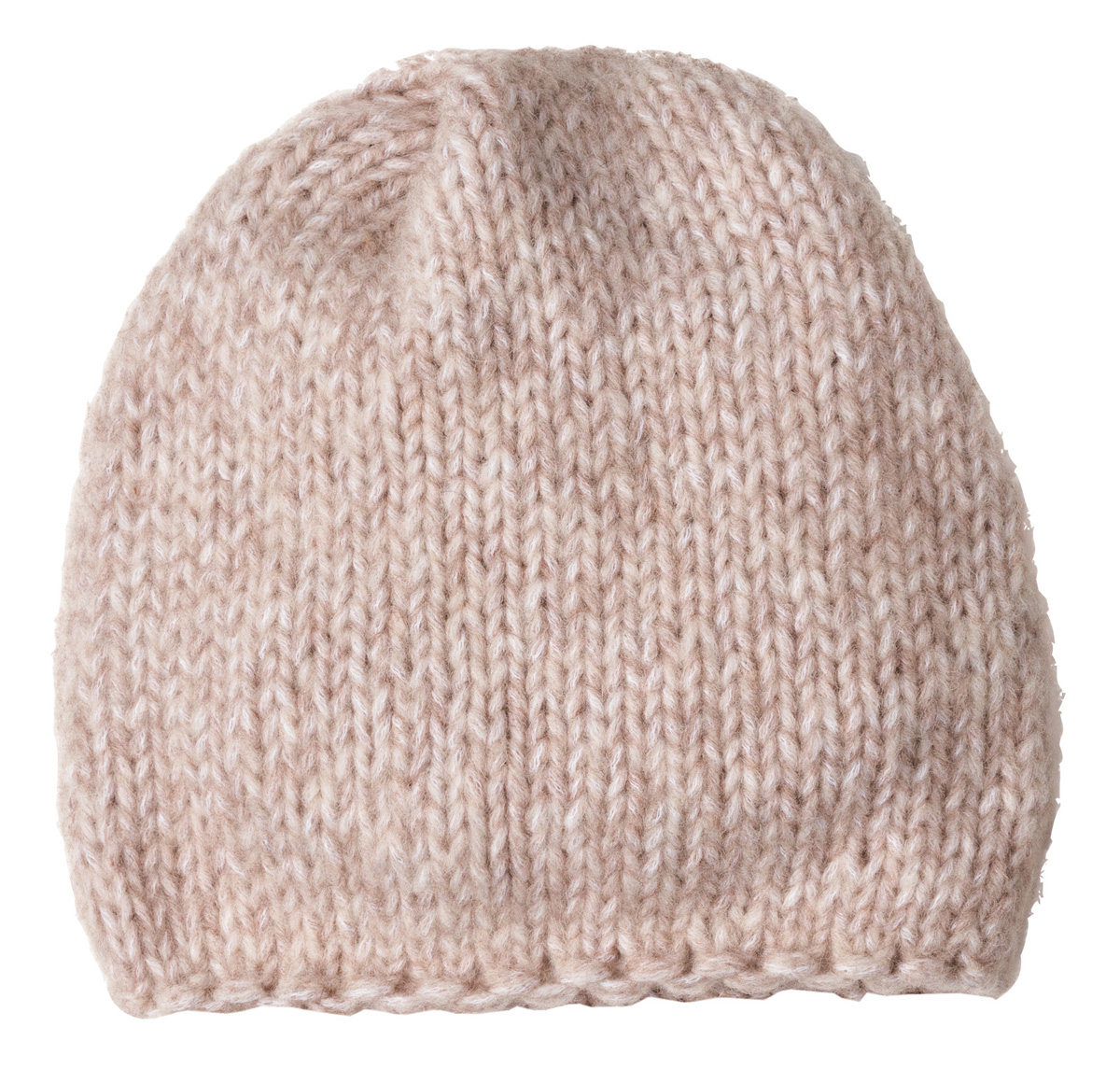 Lana Grossa kvalitet „Ecopuno Chunky“ (48% bomull, 33% ren ny ull (merino extrafine), 19% (baby) alpacka, löplängd = 70 m/50 g): 100 g ljus beige (färg 113), strumpstickor nr. 7 och nr. 8.