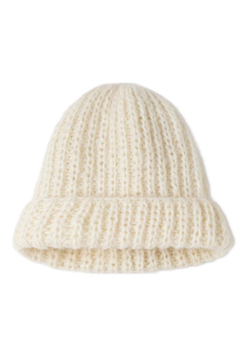 Lana Grossa Mohair di Gio (55% mohair (superkid), 45% ren ny ull (merino superfin), løpelengde 85 m/50 g), 100 g i råhvit (farge 9); 1 rundpinne nr. 7, 50 cm lang; settpinner nr. 7.