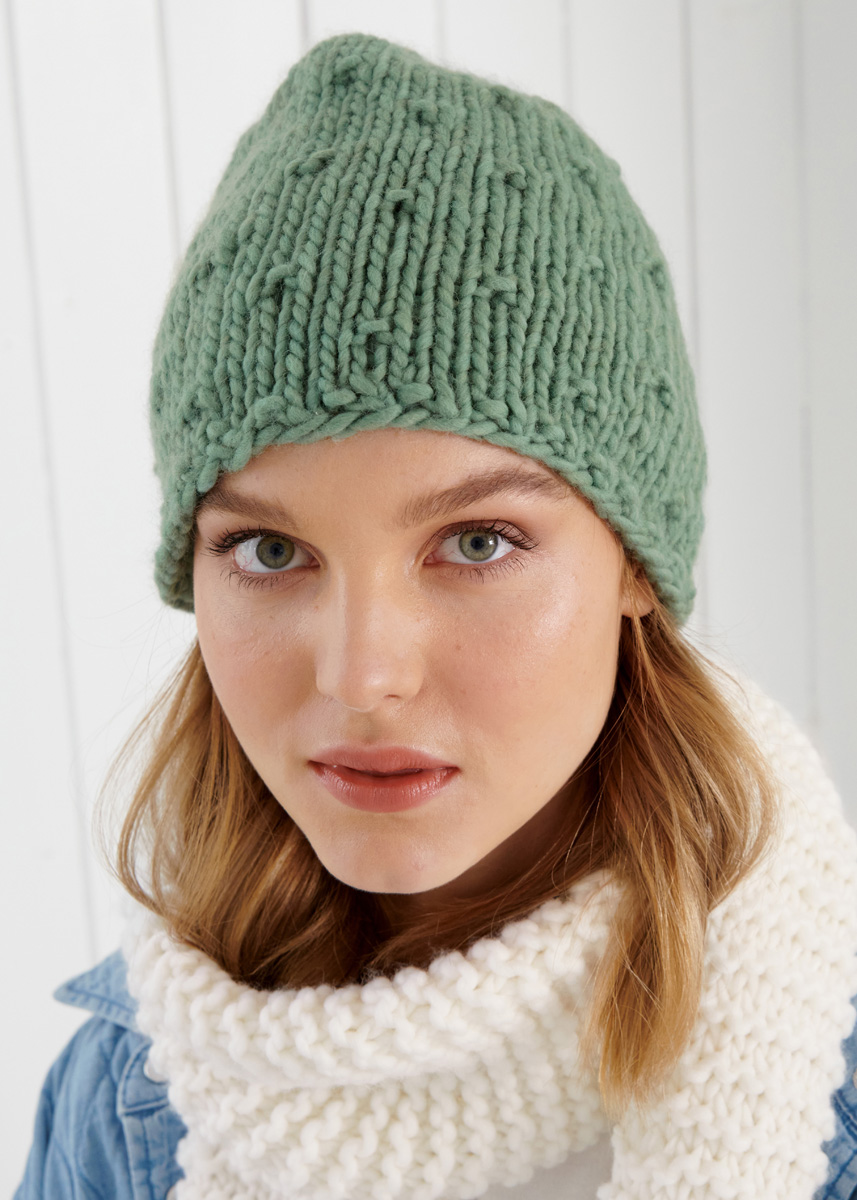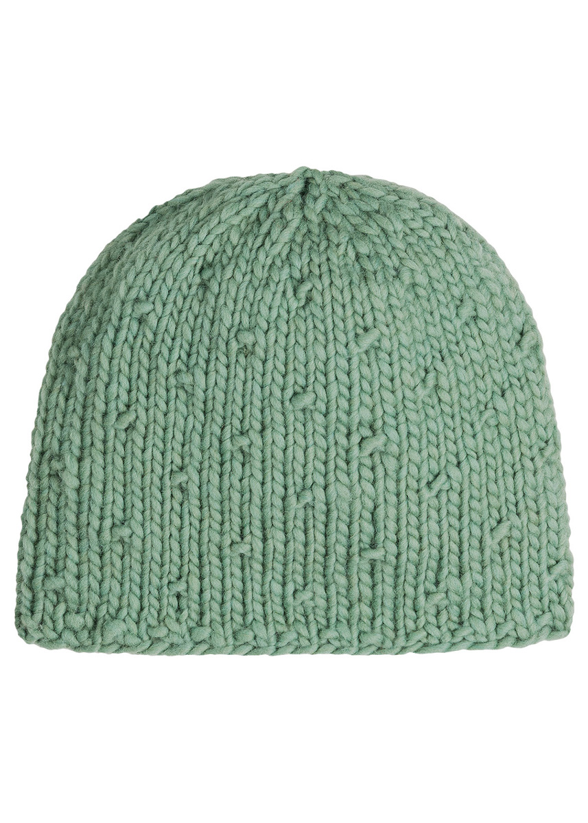 „Per Lei“ från Lana Grossa 100 % ren ny ull (merino) Löplängd = circa 60 meter/50 gram, circa 100 gram mint (färgnummer 4), Strumpstickor eller 1 kort rundsticka nummer 8, längd 40–50 cm, 1 mask-markör.