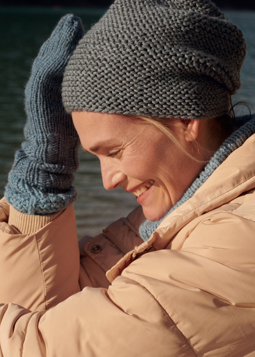 Lana Grossa Superbingo (100% ren ny ull, löplängd 55 m/50 g), 150 g mörk grå melerad (färg 25); strumpstickor nr. 6.
