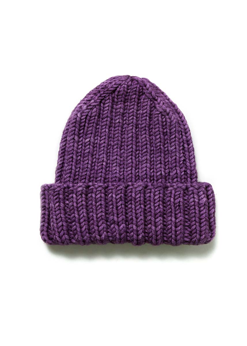 Lana Grossa-kvalitet „Vintage Superchunky” (100 % ren ny ull (merino), löplängd = ca. 80 m/100 g): ca. 200 g violett (färg 503); strumpstickor nr. 7