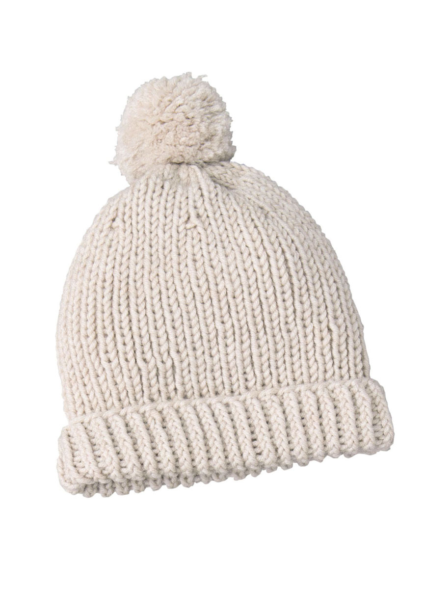 Lana Grossa Bingo melange (100 % Schurwolle, Lauflänge 80 m/50 g) 100 g Natur meliert (Fb 238); Nadelspiel Nr. 4,5; ein Pomponset.