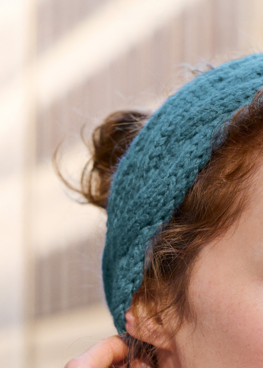Garn: Lana Grossa «Alta Moda Cashmere 16» (78% ren ull (merino), 12 % kashmir, 10% polyamid, LL = ca. 110 m/50 g): Ca. 50 g røkblå (frg 53).