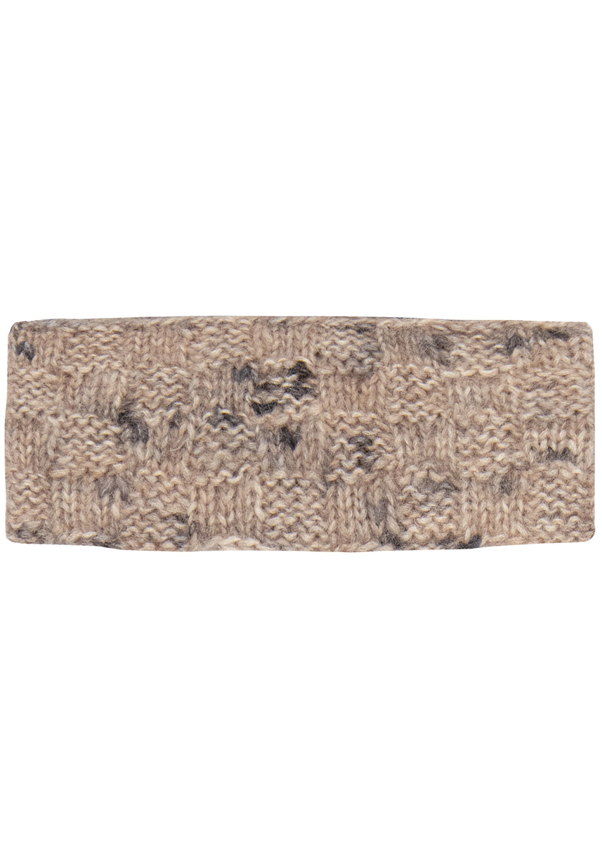 Lana Grossa-kvalitet ”Lala Berlin Lovely Cotton Inserto” (50 % (baby) alpaka, 35 % bomuld, 15 % ren ny uld, løbelængde = ca. 110 m / 50 gr.): 50 gr beige/antracit (fv 102), strømpepinde nr. 6