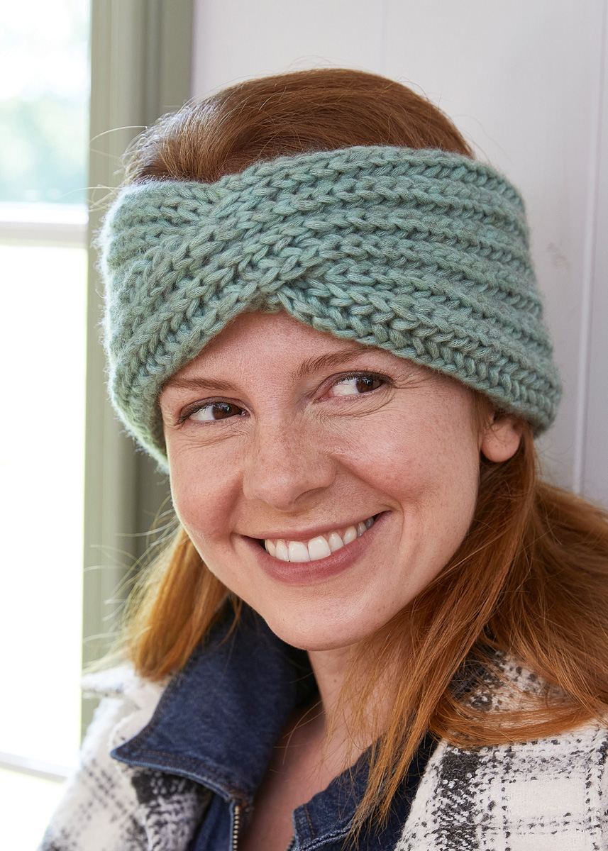 Lana Grossa-kvalitet „Landlust-Winterwolle“ (50% ren ny ull merino, 35% bomull, 15% jak, löplängd ca. 70 m/50 g), 50 g i mint melerad (färg 17); stickor nr. 7,1 flätsticka.