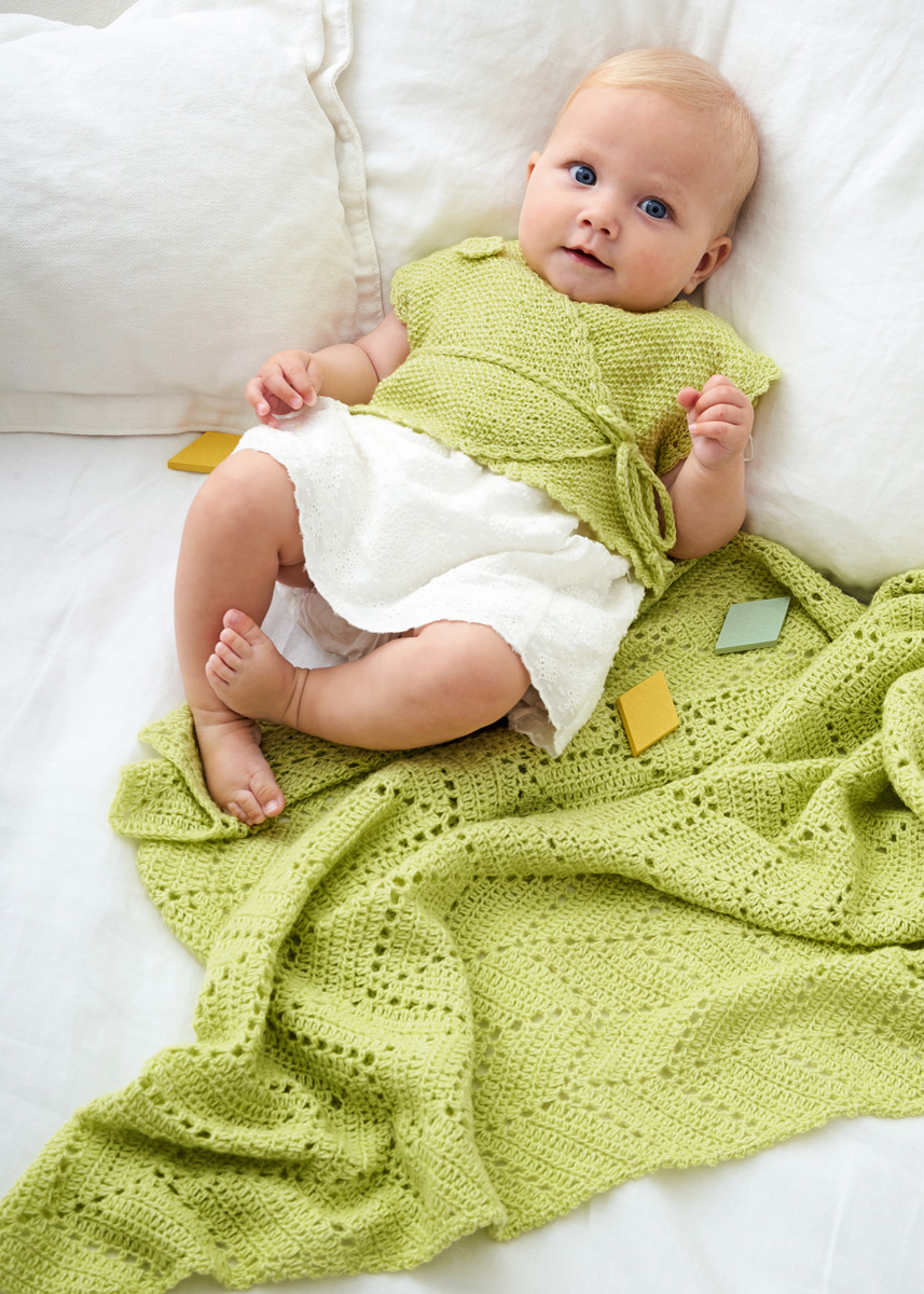 Lana Grossa-kvalitet ”Allora” (76 % bomuld, 14 % ren ny uld (merino superfine), 10 % alpaka (baby), løbelængde = ca. 300 m / 50 gr.): ca. 200 gr gulgrøn (fv 2), hæklenål nr. 3.