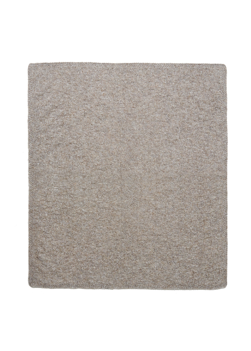 Lana Grossa-Kvalitet “Bella” (35 % bomuld, 30 % nylon, 25 % alpaka (baby), 10 % ren ny uld (merino), løbelængde = 250 m / 25 gr.): 150 gr gråbrun (fv 16), rundpind nr. 4½, 100 cm, hæklenål nr. 4.