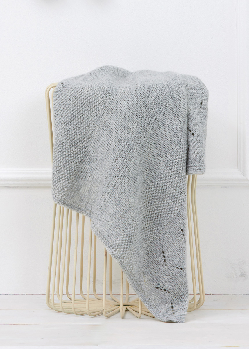 Lana Grossa-kvalitet ”Cool Wool Baby” (100 % ren ny uld (ekstrafin merino), løbelængde = ca. 220 m / 50 gr.): 200 gr lysegrå meleret (fv 206) og Lana Grossa-kvalitet ”Bella” (35 % bomuld, 30 % nylon, 25 % alpaka (baby), 10 % ren ny uld (merino), løbelængde = ca. 250 m / 25 gr.): 75 gr lysegrå (fv 14), rundpind nr. 4½, 100 cm, hæklenål nr. 4.