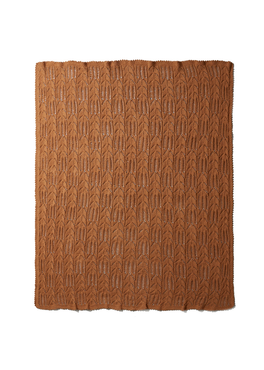 Lana Grossa-kvalitet „Organico“ (100 % (bio) bomull, löplängd = ca. 90 m/50 g): ca. 1200 g i kamel (färg 157); 1 rundsticka nr. 4, 120 cm lång, 1 virknål nr. 3,5.