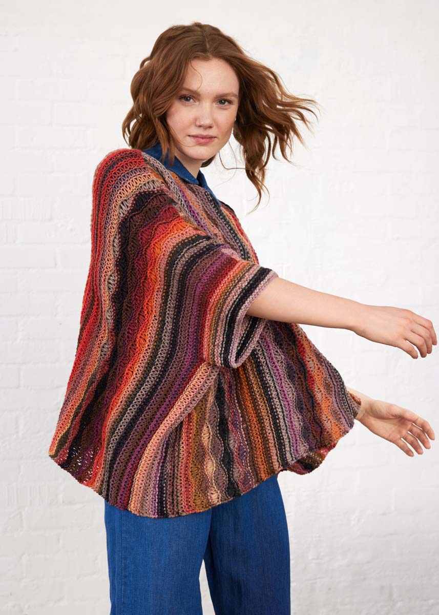 Lana Grossa Farfalla (94% ren ny ull (merino extrafine), 6% polyamid, LL 340 m/100 g), 400 g laks/oransje/rosa/grå/ gråbrun/koks/grålilla/fuksia (frg 10) Pinner: Rundpinne nr. 5,5 og strømpepinner nr. 6