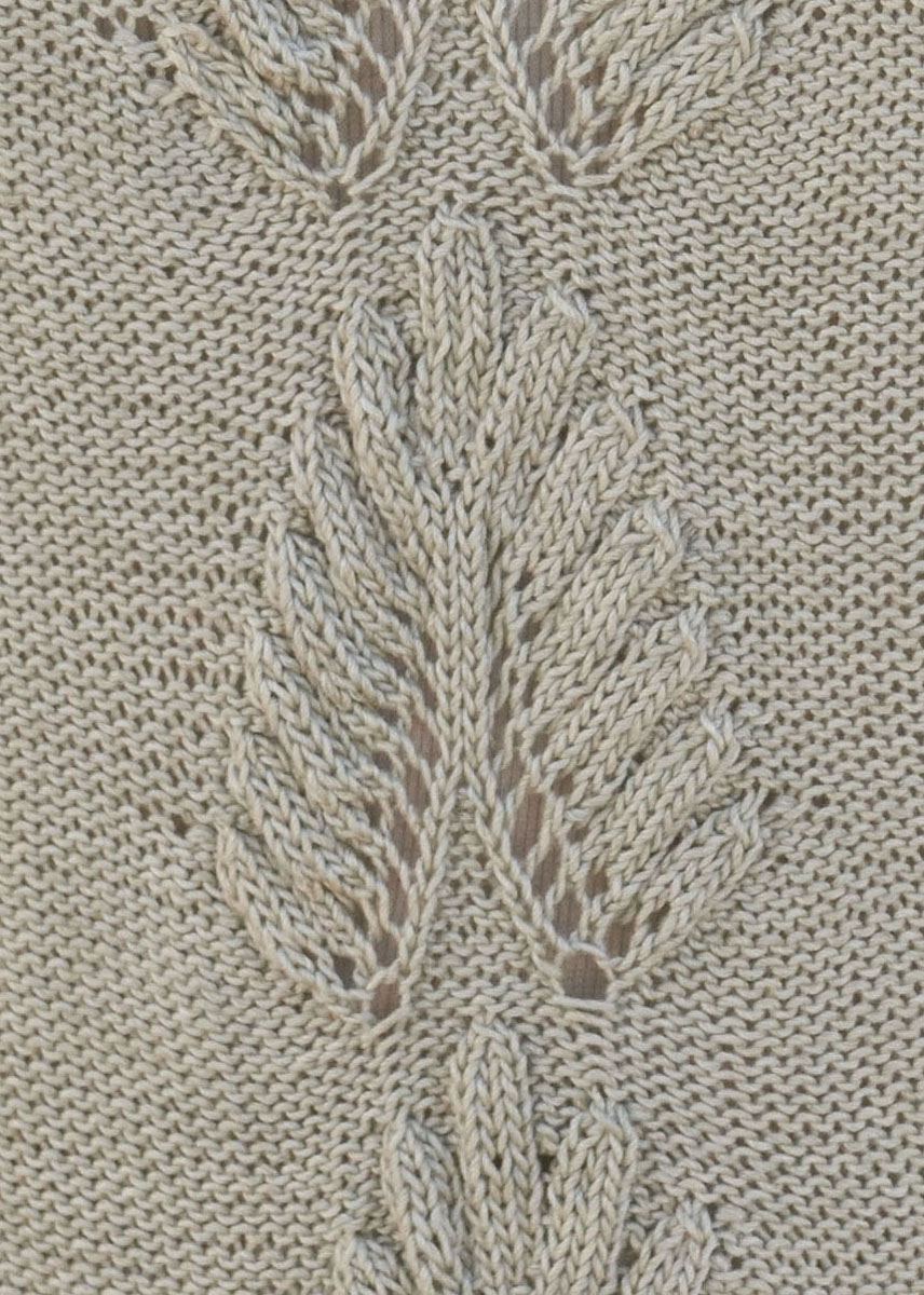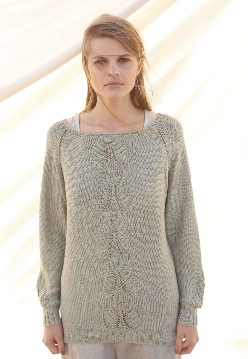 Lana Grossa Solo Lino (80 % recyceltes Leinen (Viskose), 20 % Leinen, Lauflänge 120 m/50 g) 500 (550-600) g Hellgrau (Fb 5); Stricknadeln Nr. 3 und 4, eine 80 cm lange Rundstricknadel Nr. 4.