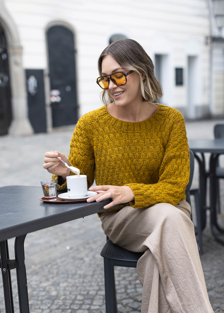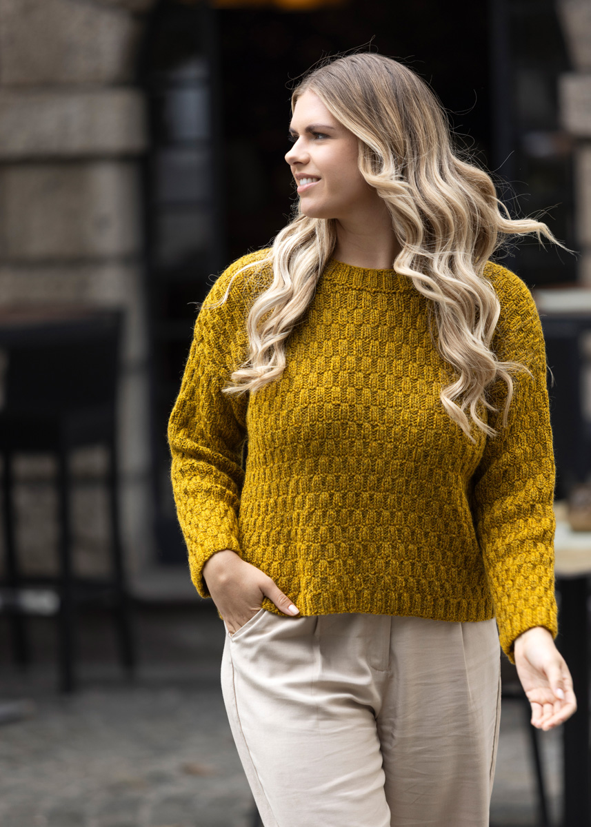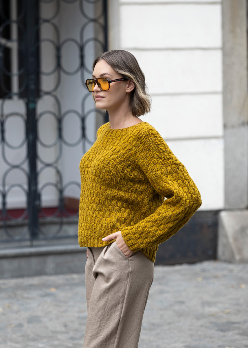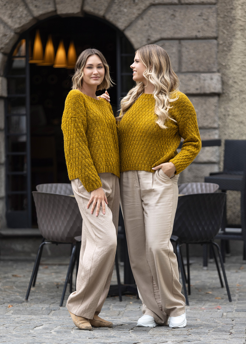 Lana Grossa ALTA MODA ALPACA 90 % alpacka, 5% polyamid, 5% ren ny ull Löplängd: ca. 140 m / 50 g • 400 (450 - 500 - 550 - 600 - 650) g senapsgul (färg 96)
