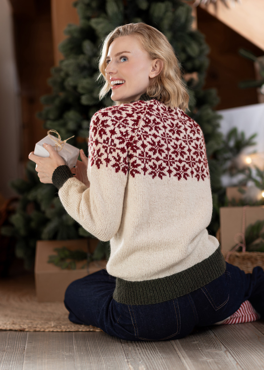 Bakstycket och framstycket stickas runt upp till ärmhålet och avslutas därefter var för sig. Ärmarna stickas också runt upp till raglanskråningen.
