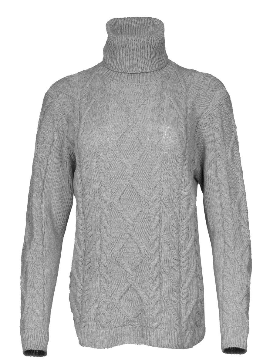 Lana Grossa-kvalitet ”Cashmere 16 Fine” (80 % ren ny uld, 10 % cashmere, 10 % polyamid, løbelængde = ca. 320 m / 50 gr.): 350(400-450) gr hellblau (fv 28), strikkepinde nr. 5, rundpind nr. 4½, 40 cm, 1 hjælpepind