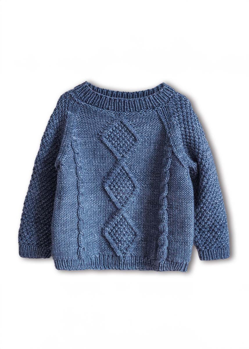 Lana Grossa Cool Wool Big Vintage (100 % ren ny uld (ekstrafin merino), løbelængde = ca. 120 m / 50 gr.): 100 (100 – 150 – 200) gr mørkeblå (fv 7166), rundpind nr. 3½ og 4, 4 maskemarkører.