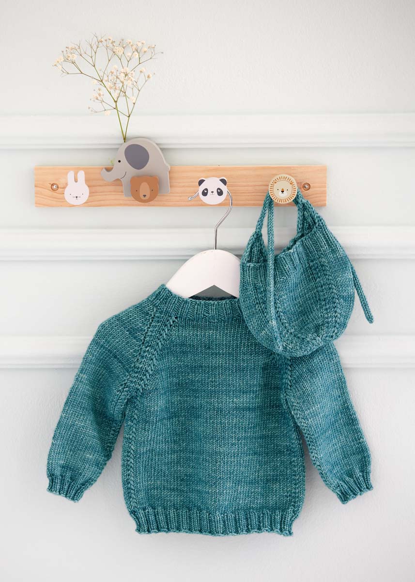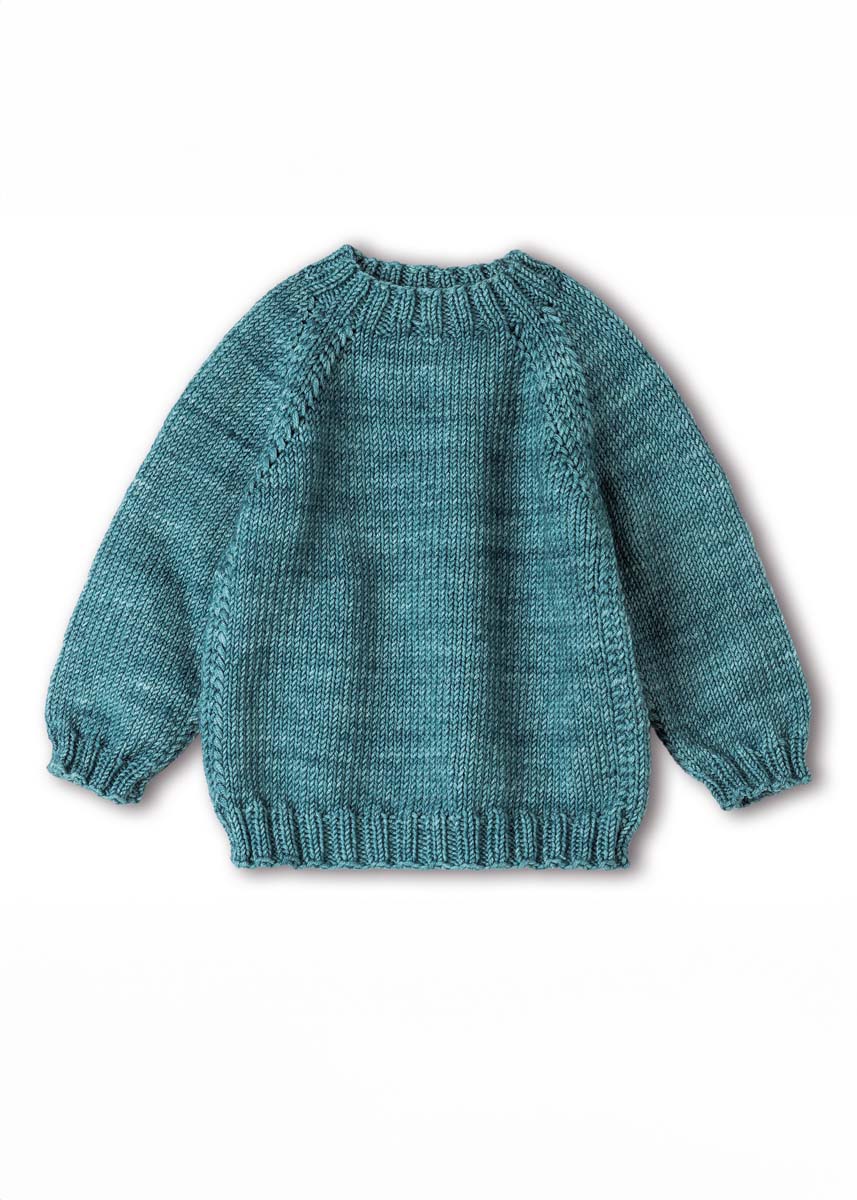 Lana Grossa Cool Wool Big Vintage (100 % ren ny uld (ekstrafin merino), løbelængde = ca. 120 m / 50 gr.): 100 (100 – 150 – 200) gr petrol (fv 7179), rundpind nr. 3½ og 4, en strømpepind nr. 3½ og 4½, 5 maskemarkører, en snoningspind.
