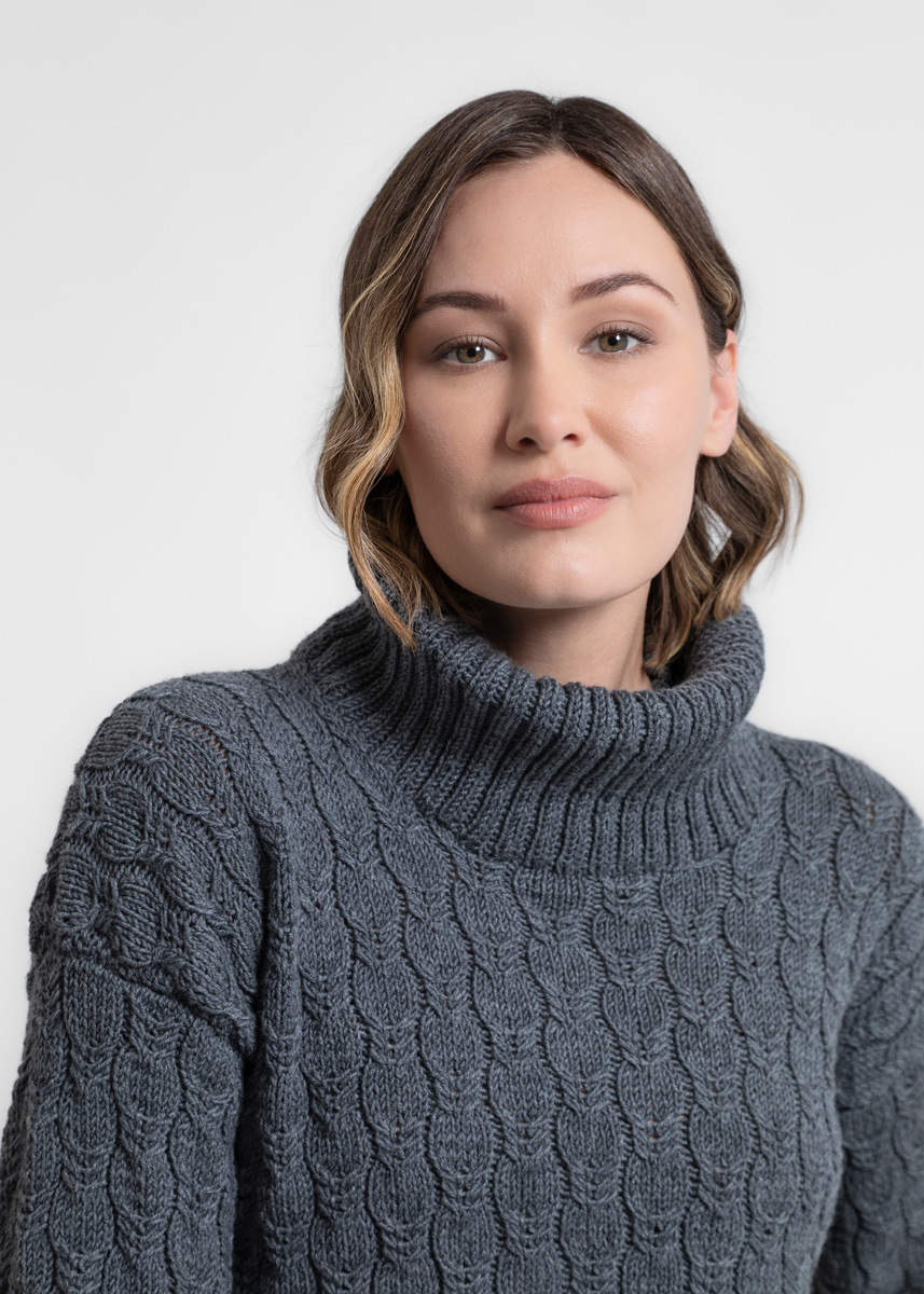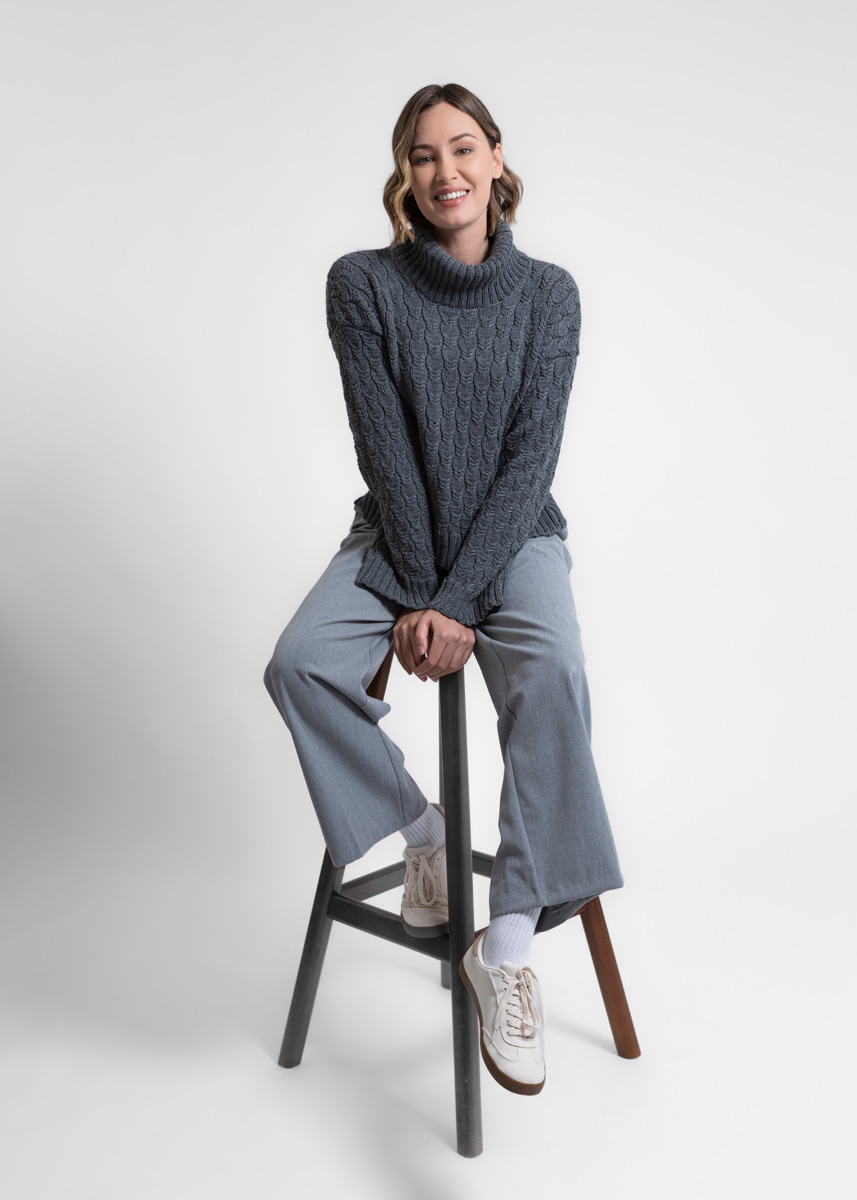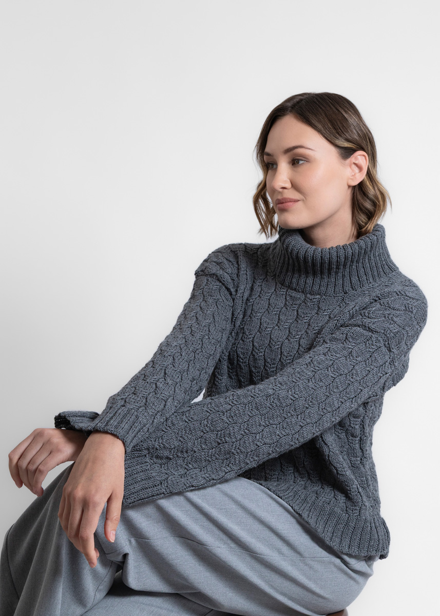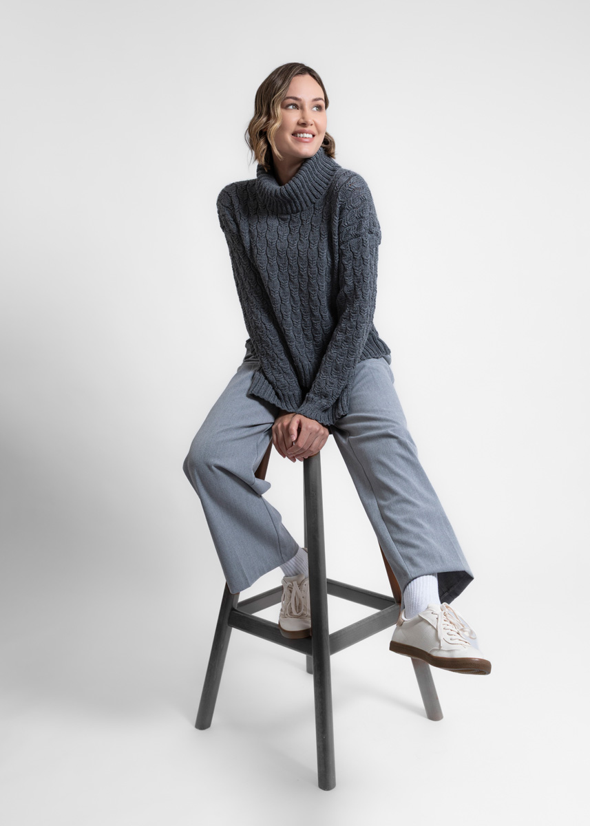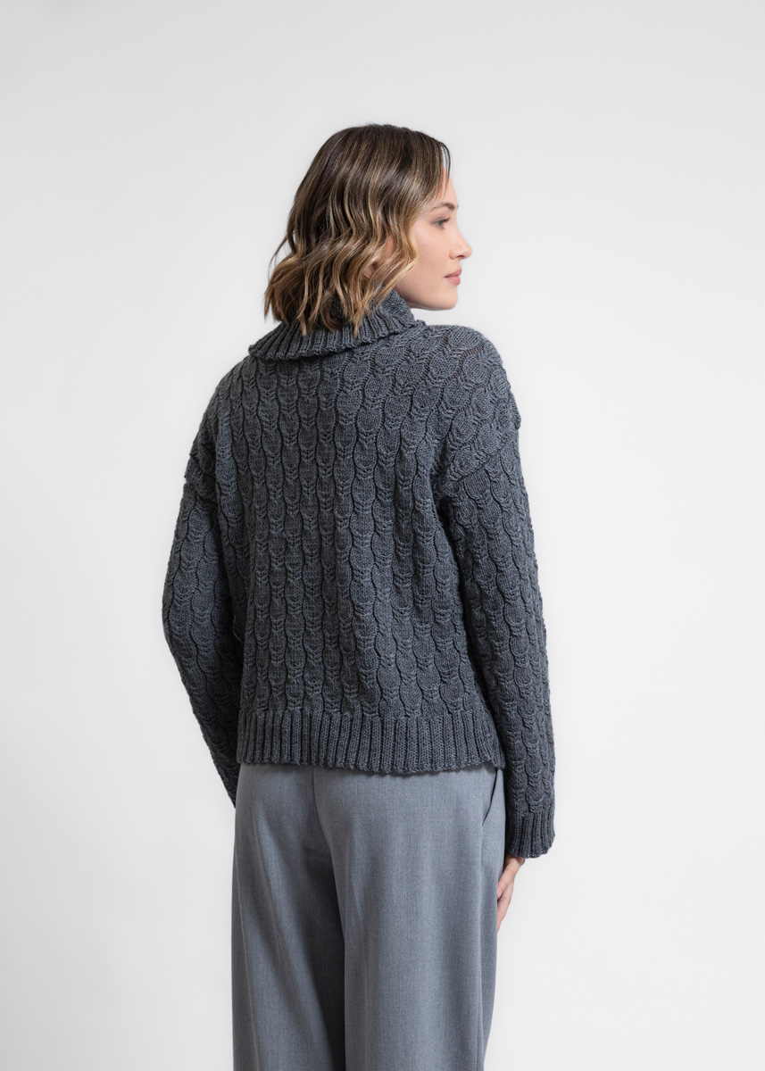 Lana Grossa COOL WOOL 100 % ren ny ull merino Löplängd: ca. 160 m / 50 g • 600 (650 - 700 - 750 - 800 - 850) g mörkgrå melerad (färg 412) • Stickor nr. 3,5 • Rundsticka nr. 3,5 / 40 cm • Flätsticka