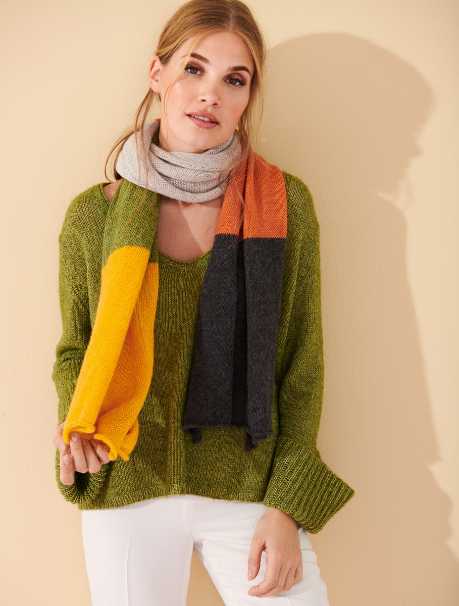 Lana Grossa Ecopuno (72 % bomull, 17 % virgin ull, 11 % alpacka, löplängd 215 m/50 g) 350 (400 – 450) g äppelgrön (färg 2); stickor nr. 3,5 och 4; rundsticka nr. 3,5 (40 cm lång).