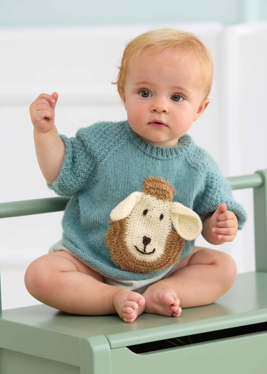 størrelser. Materiale: Lana Grossa Ecopuno (72 % bomuld, 17 % ren ny uld (merino), 11 % alpaka (baby), løbelængde = ca. 215 m / 50 gr.): 100 (100 – 100 – 150) gr mintturkis (fv 44) og 50 gr sortbrun (fv 212), karamel (fv. 65) og ecru (fv 46), rundpind nr. 3 og 3½, maskemarkører, hæklenål nr. 2½ og 3½, trykknapper til påsyning.