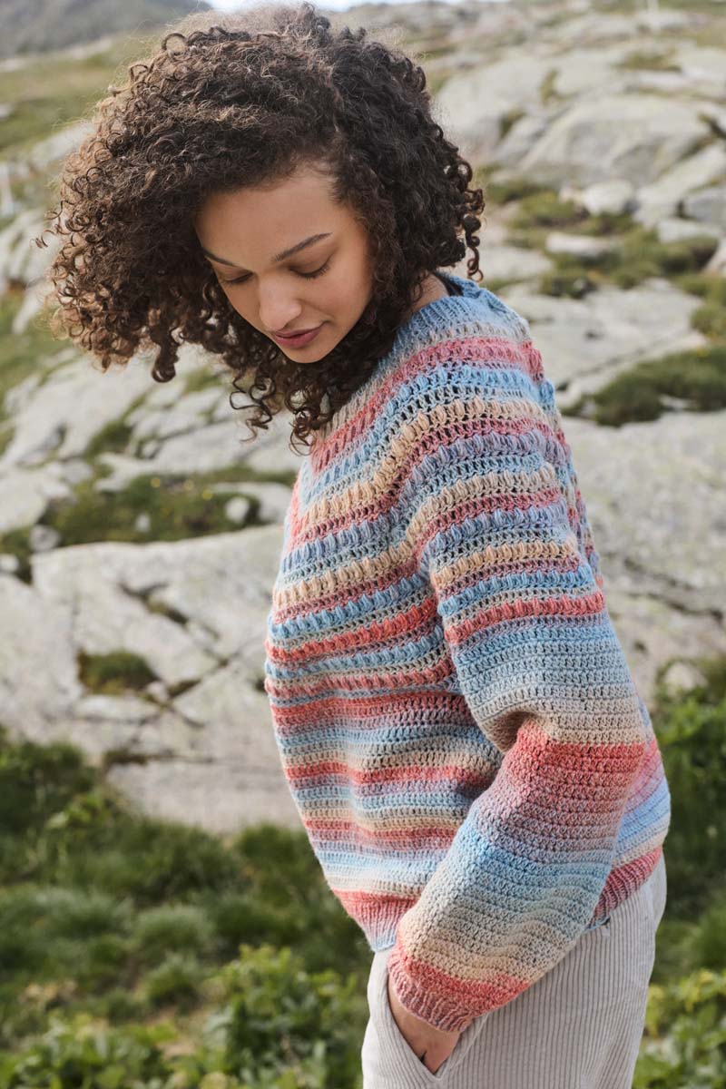 Häftet med beskrivningar är pa TYSKA! Enstaka beskrivningar kan fas pa norska vid köp av garnpaket. Oavsett om ränderna är breda eller smala, mjuka eller kraftfulla – GOMITOLO-garner skapar färgexplosioner i form av ränder, helt utan ansträngning direkt från nystanet. De känns alltid ...
