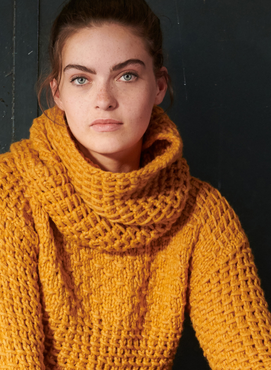 Här kan du välja om du vill sätta ihop pullovern och loopen (Modell 41) till en varm rullkragepullover, eller om du bara vill bära pullovern själv när det inte är så kallt.