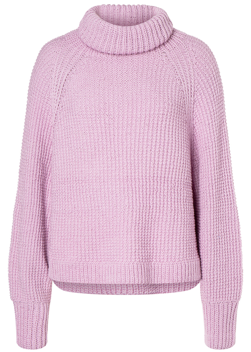 Lana Grossa Landlust Alpaka Merino 160 (50% ren ny ull (merino), 50% (baby) alpacka, löplängd 160 m/50 g), 500 (550 – 600) g rosa (färg 413); rundstickor nr. 4,5, 40, 60 och 80 cm lång, 8 maskmarkörer.