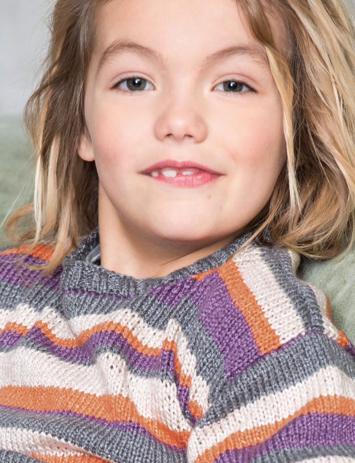 Ganz schön cool dieses wunderbar gestreifte Strickshirt! Du trägst es natürlich in deinen Lieblingscolors. Stimmt schon: dieser lässige Style ist nur „selbst gestrickt” zu haben!