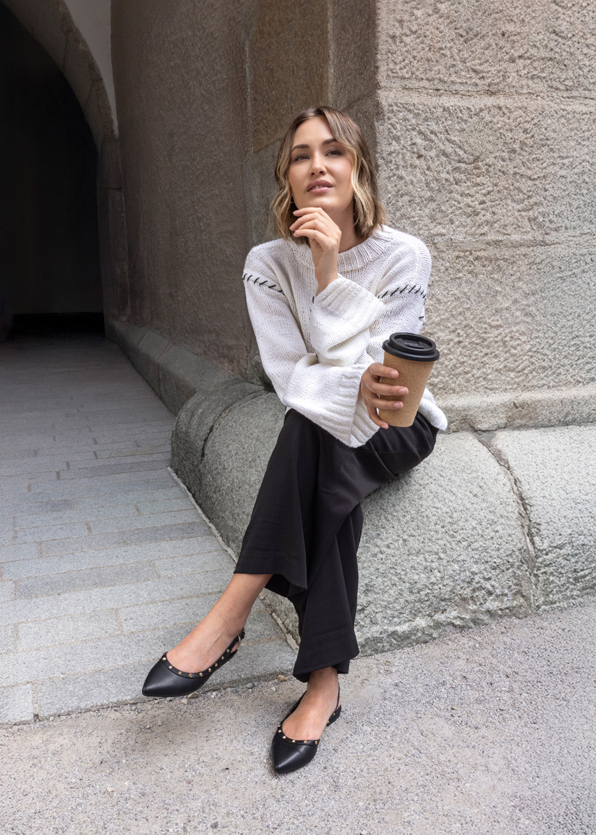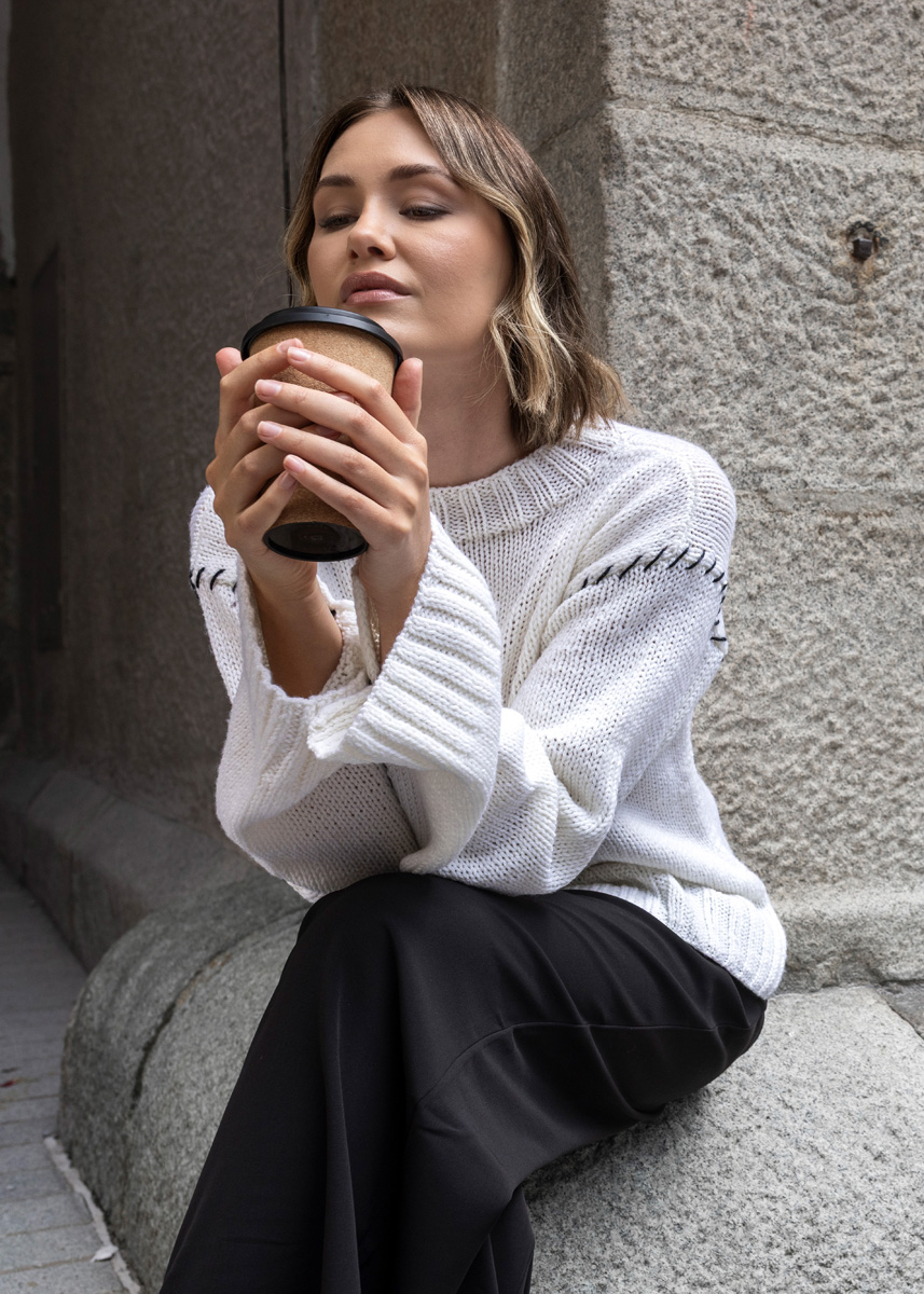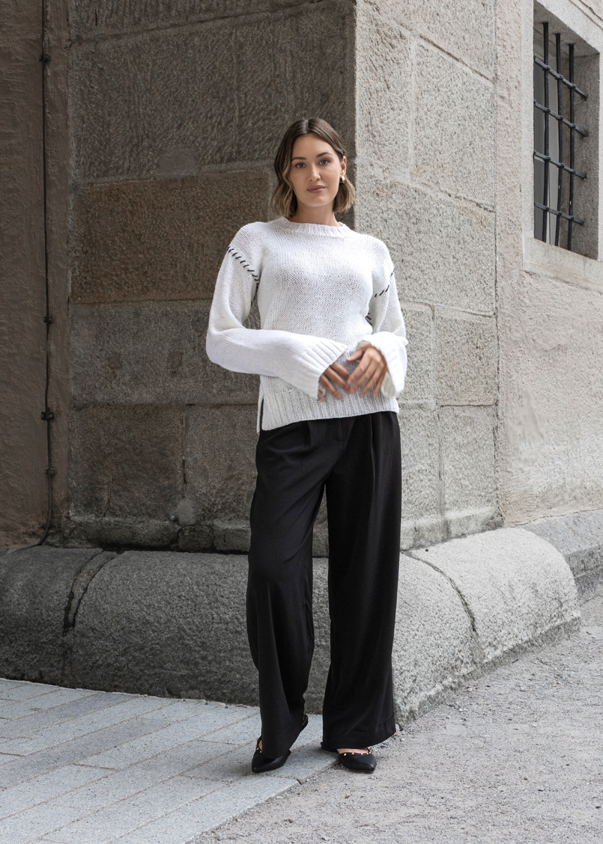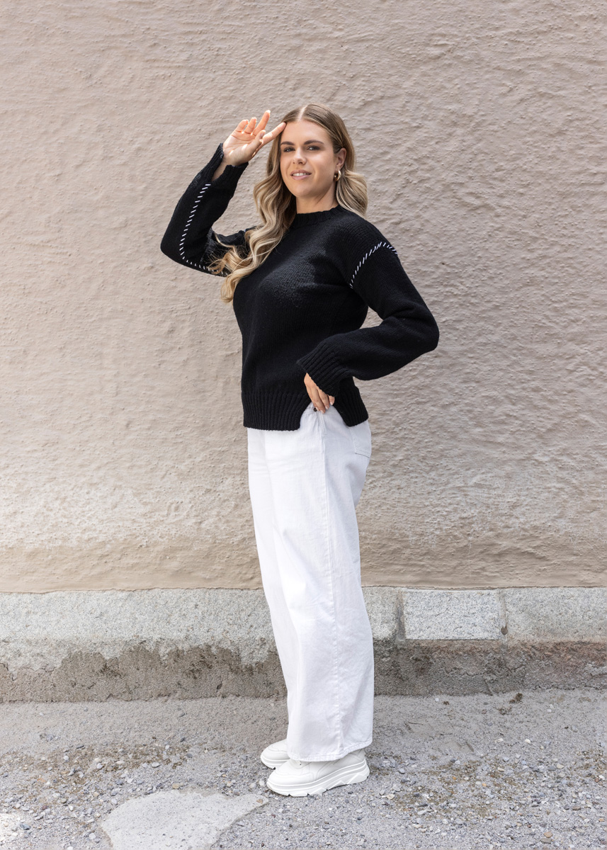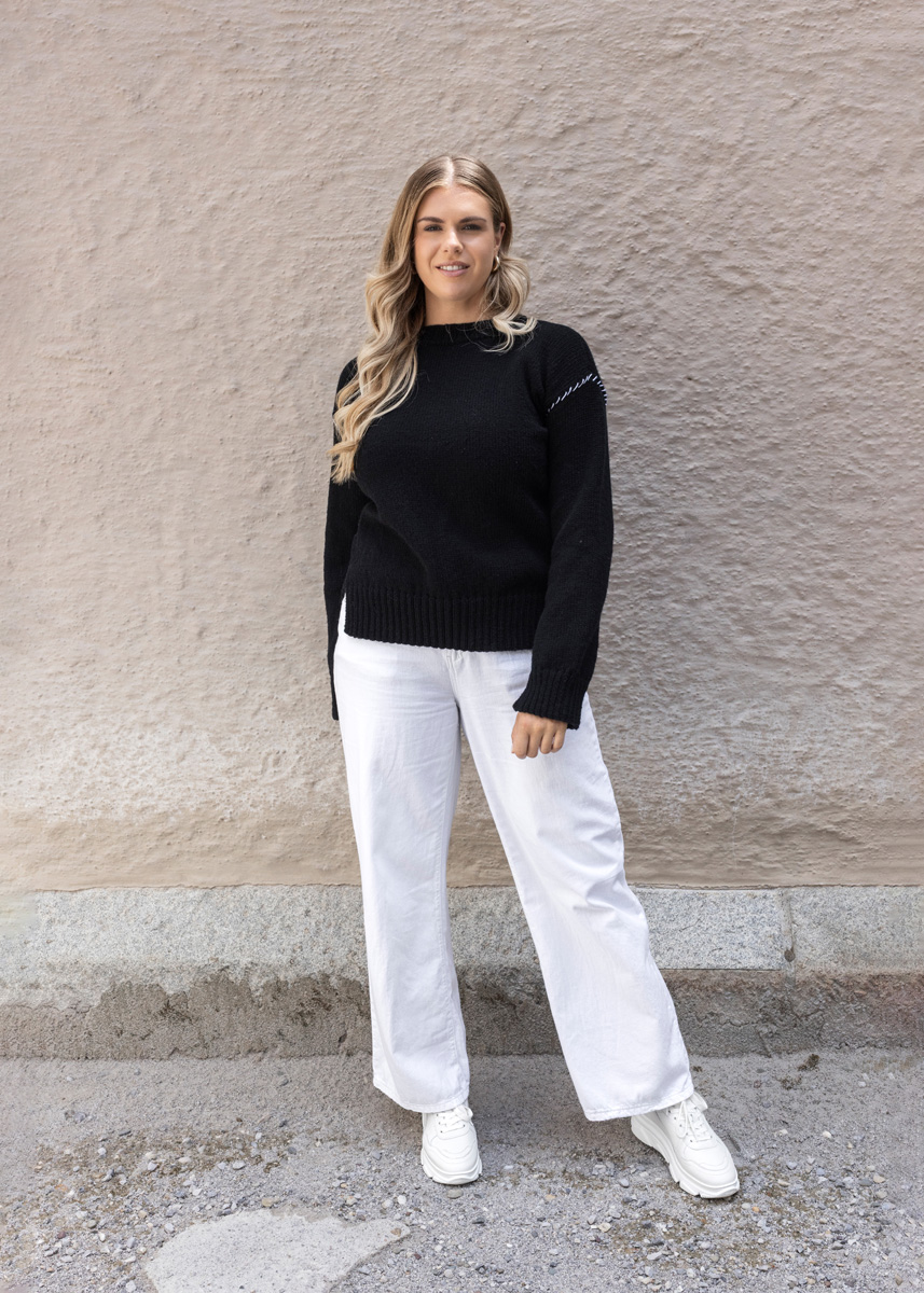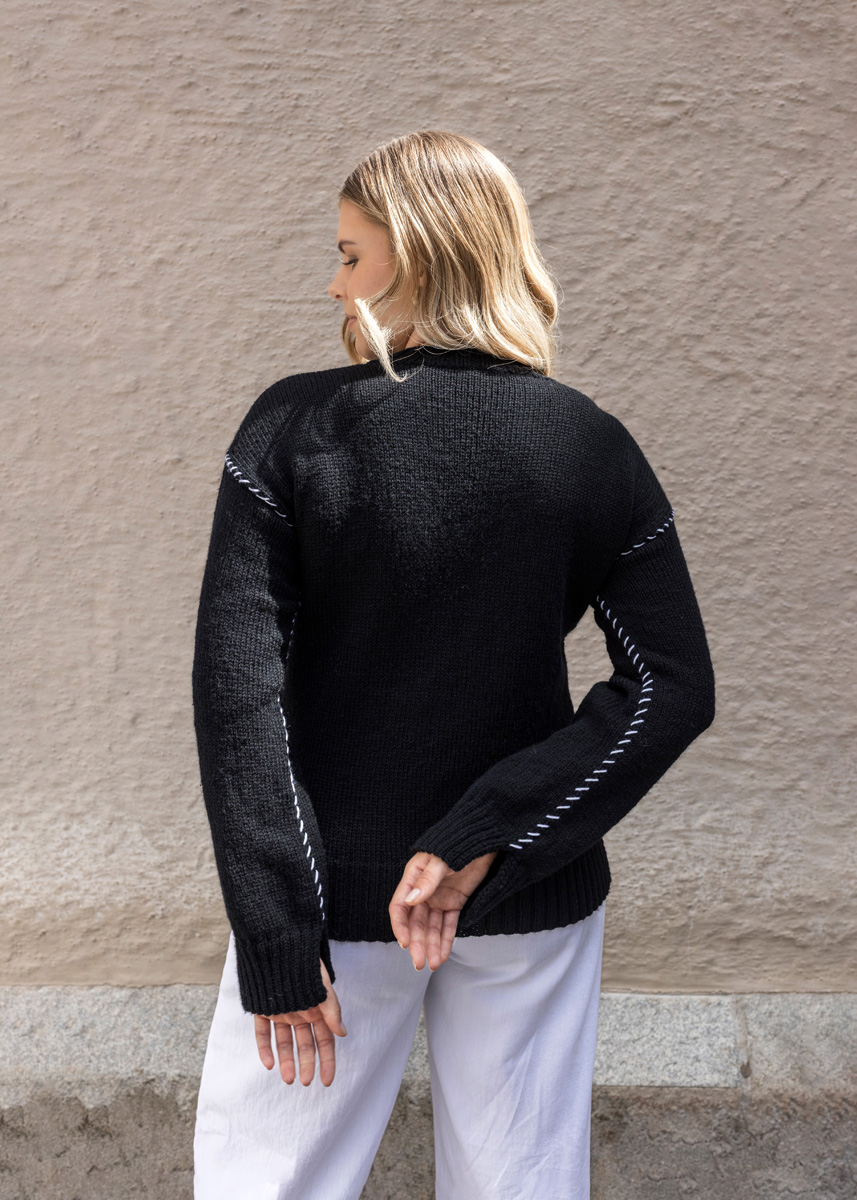 Lana Grossa MERINO UNO 100 % ren ny ull merino Löplängd: ca. 125 m / 50 g • 350 (350 - 400 - 400 - 450 - 450) g vit (färg 1) eller svart (färg 13 • 50 g svart (färg 13) eller vit (färg 1) • Stickor nr. 3,5 och 5 • Rundsticka nr. 3,5 / 40 cm
