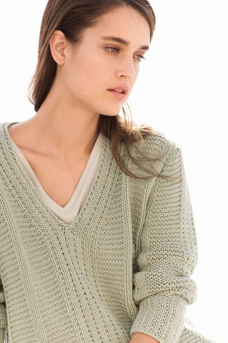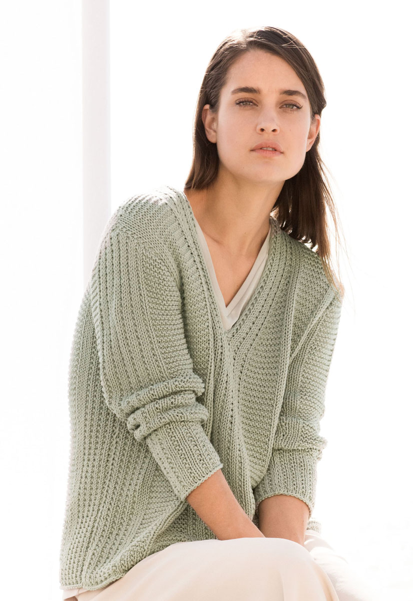 Lana Grossa Organico (100% Baumwolle, Lauflänge 90 m/50 g), 500 (550 – 600) g Schilfgrün (Fb 89); Stricknadeln Nr. 5