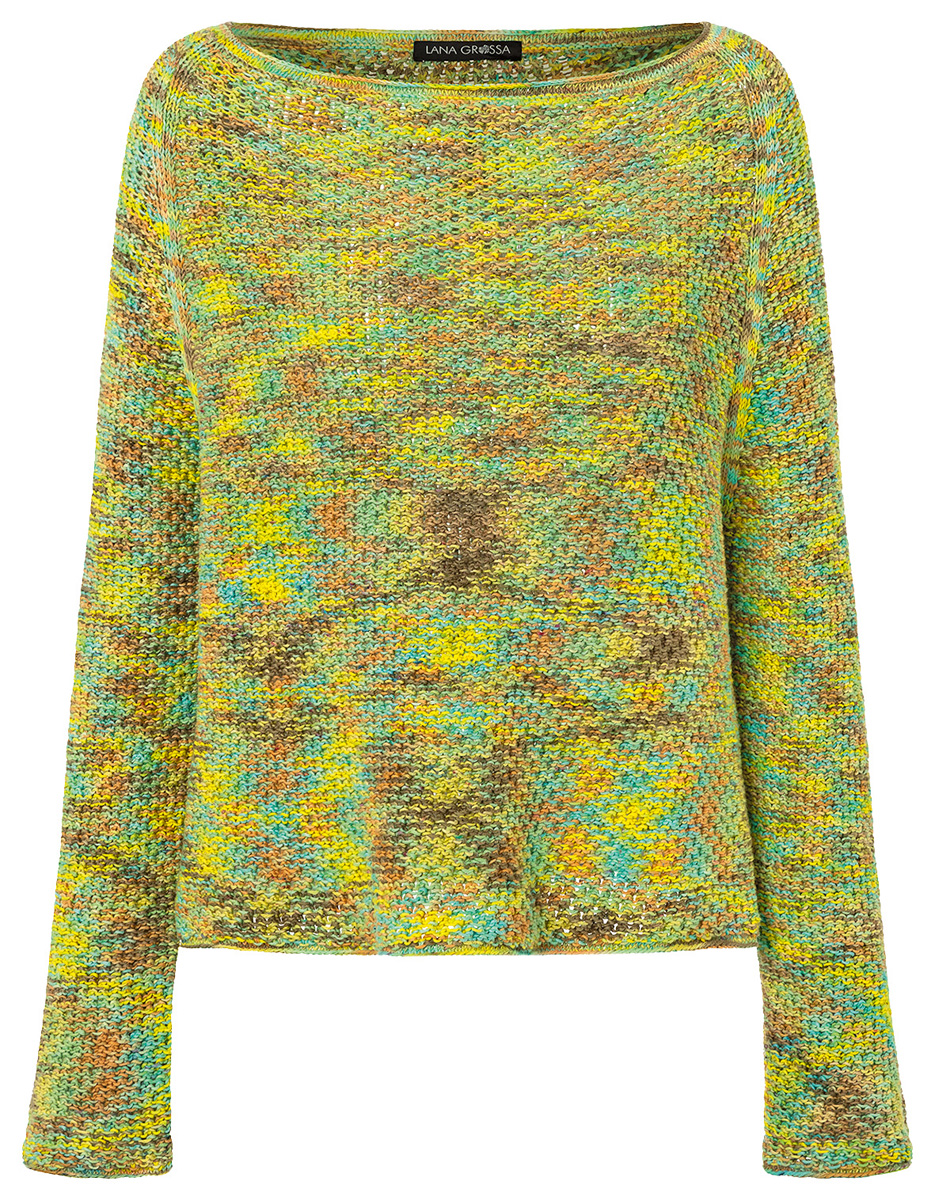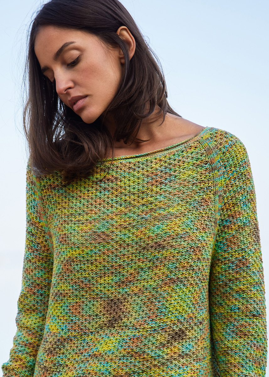 Lana Grossa Pima Fine hand-dyed (100% bomull (Pima), löplängd 340 m/100 g), 500 (500 – 600) g Ranbir (färg 703); stickor nr. 3 och 4, 1 rundsticka nr. 3, 40 cm lång.