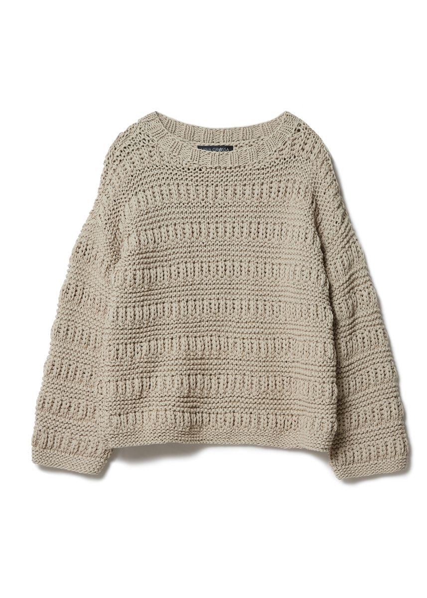 Lana Grossa „Promessa“ (70 % (Bio) bomull, 30 % recyceltes polyamid, löplängd 125 m/50 g), 800 (850 – 850 – 900) g gråbeige (färg 15); stickor nr. 7 och 8; rundsticka nr. 7, 40 cm lång. Tips: Pullovern stickas med dubbla trådar.
