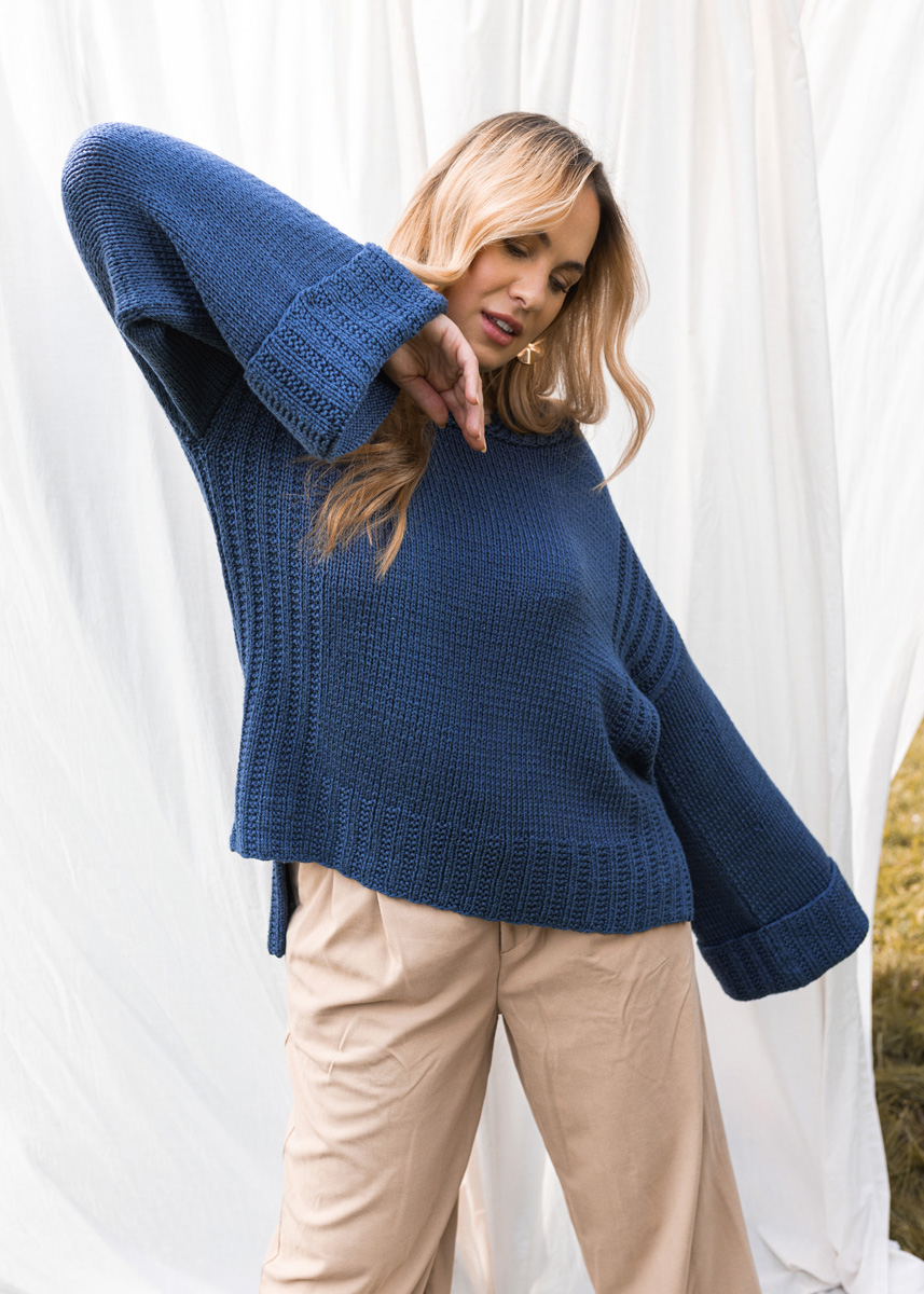 Modellen har en totallängd (bakstycke) av 73 (73 - 75 - 77 - 79 - 81) cm och en bröstövervidd av 24 cm vid 80 cm bröstomkrets (24 cm vid 88 cm bröstomkrets - 24 cm vid 96 cm bröstomkrets - 20 cm vid 104 cm bröstomkrets - 16 cm vid 116 cm bröstomkrets - 12 cm vid 128 cm bröstomkrets)