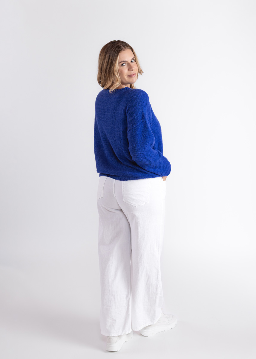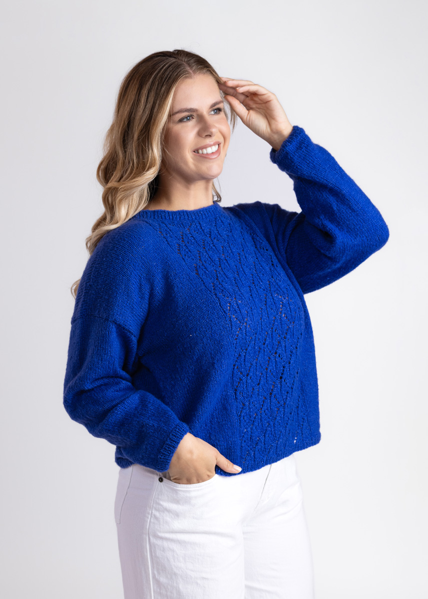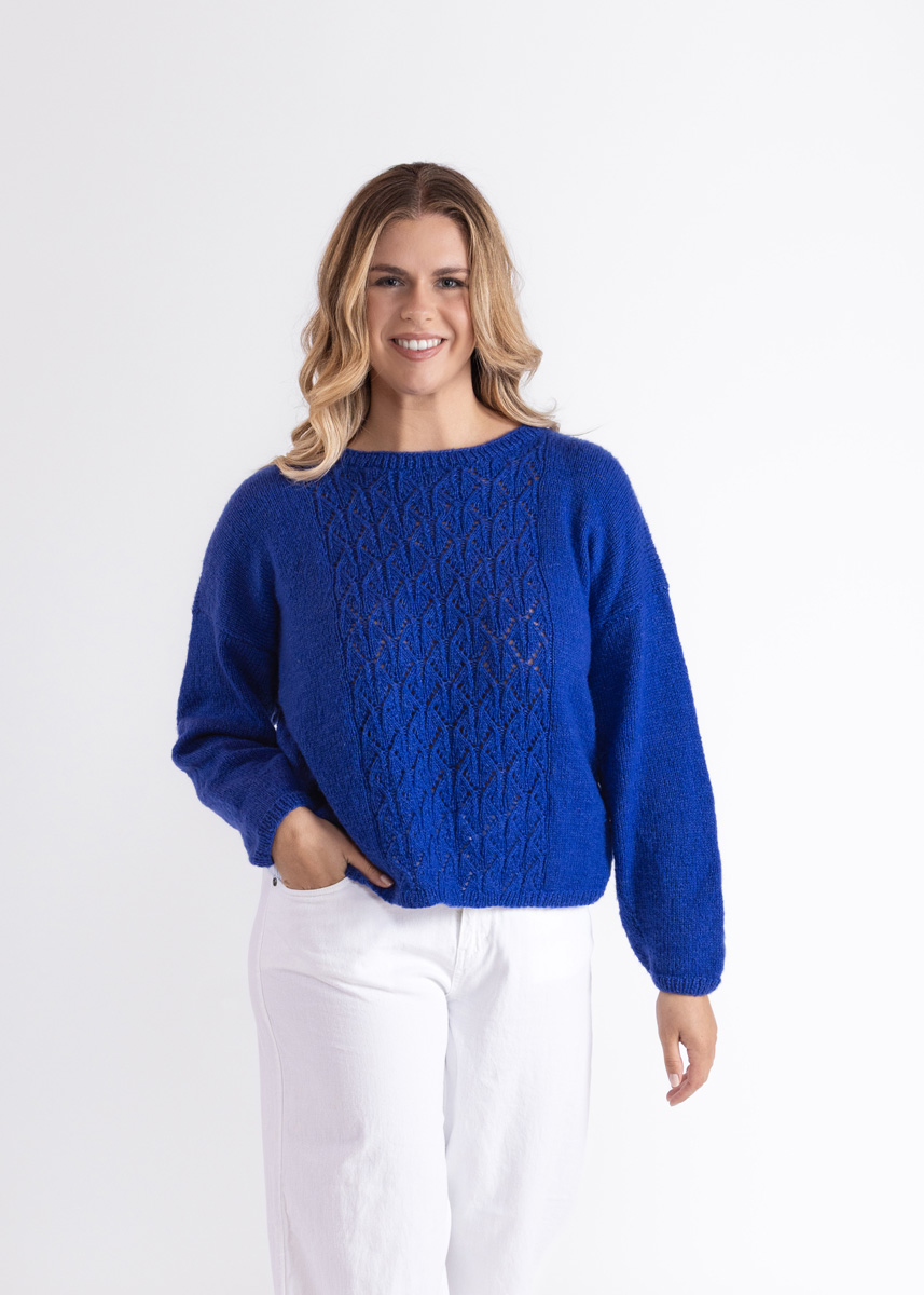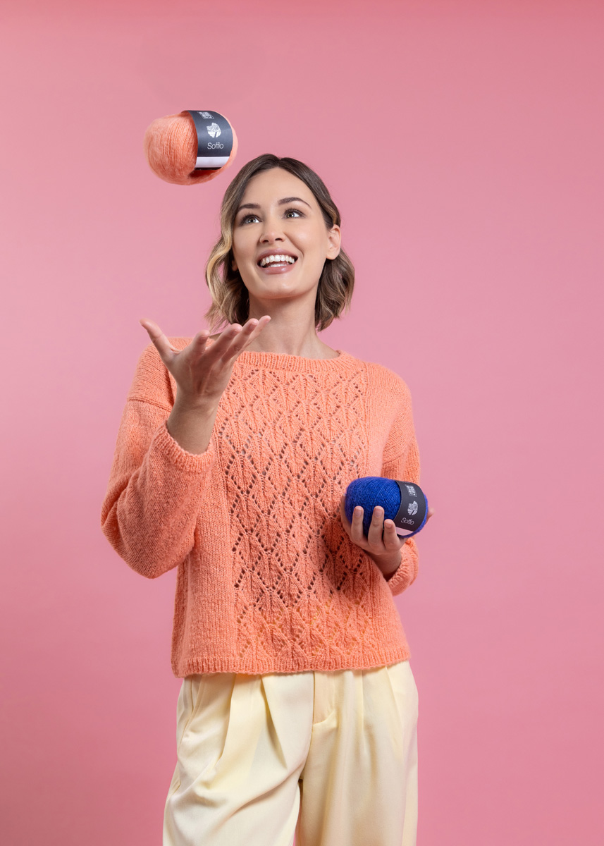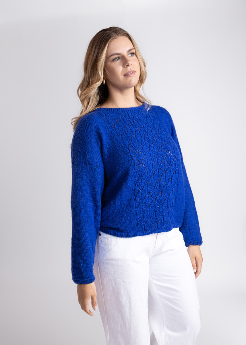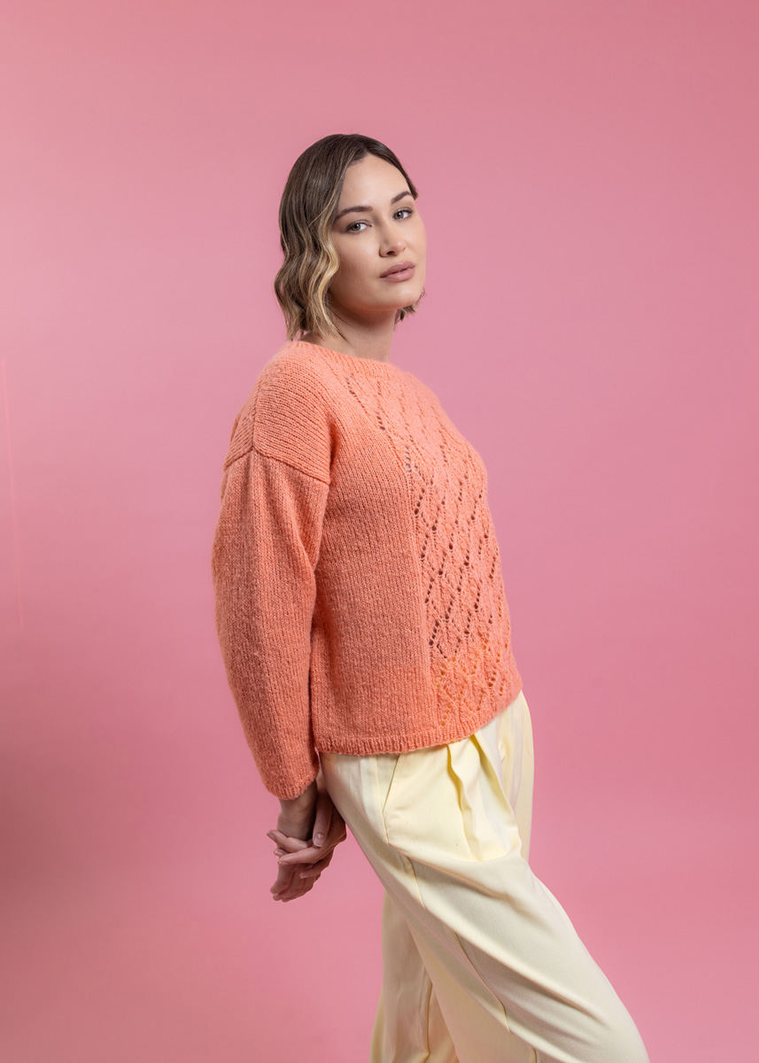 Pullovern stickas genomgående med dubbelt tråd. Modellen har en total längd på 53 (55 - 57 - 59 - 61 - 63) cm. Bystvidden är anpassad så att den är 22 cm större än en bystomkrets på 80 cm (18 cm större än en bystomkrets på 88 cm - 14 cm större än en bystomkrets på 96 cm - 14 cm större än en bystomkrets på 104 cm - 10 cm större än en bystomkrets på 116 cm - 10 cm större än en bystomkrets på 128 cm).