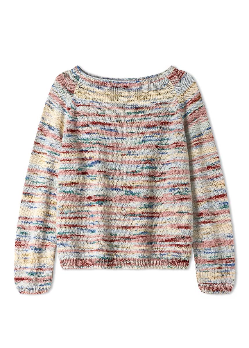 Lana Grossa „Torto“ (90% bomull, 10% polyamid, løpelengde 120 m/50 g), 400 (400 - 450) g i lys grå/jeans/rosa/terrakotta/blekgul (farge 4); pinner nr. 3,5 og nr. 4, 1 rundpinne nr. 3,5, 40 cm lang.