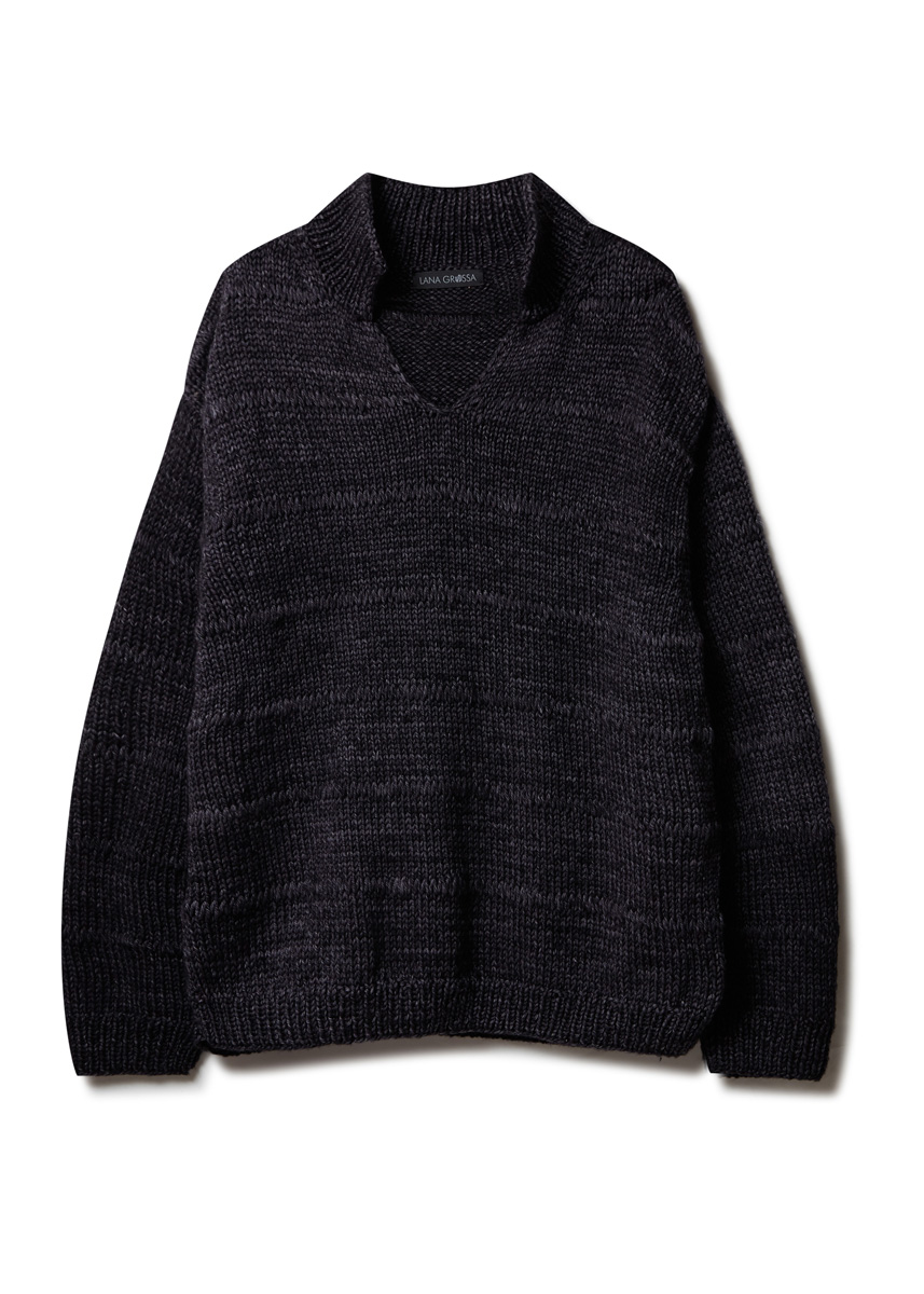 Lana Grossa Vintage Chunky (100% ren ny ull (extrafin merino), löplängd 80 m/50 g), 700 (750 – 800) g anthracit/svart (färg 14); stickor nr. 5 och 6,5 och 1 rundsticka nr. 5, 40 cm lång.