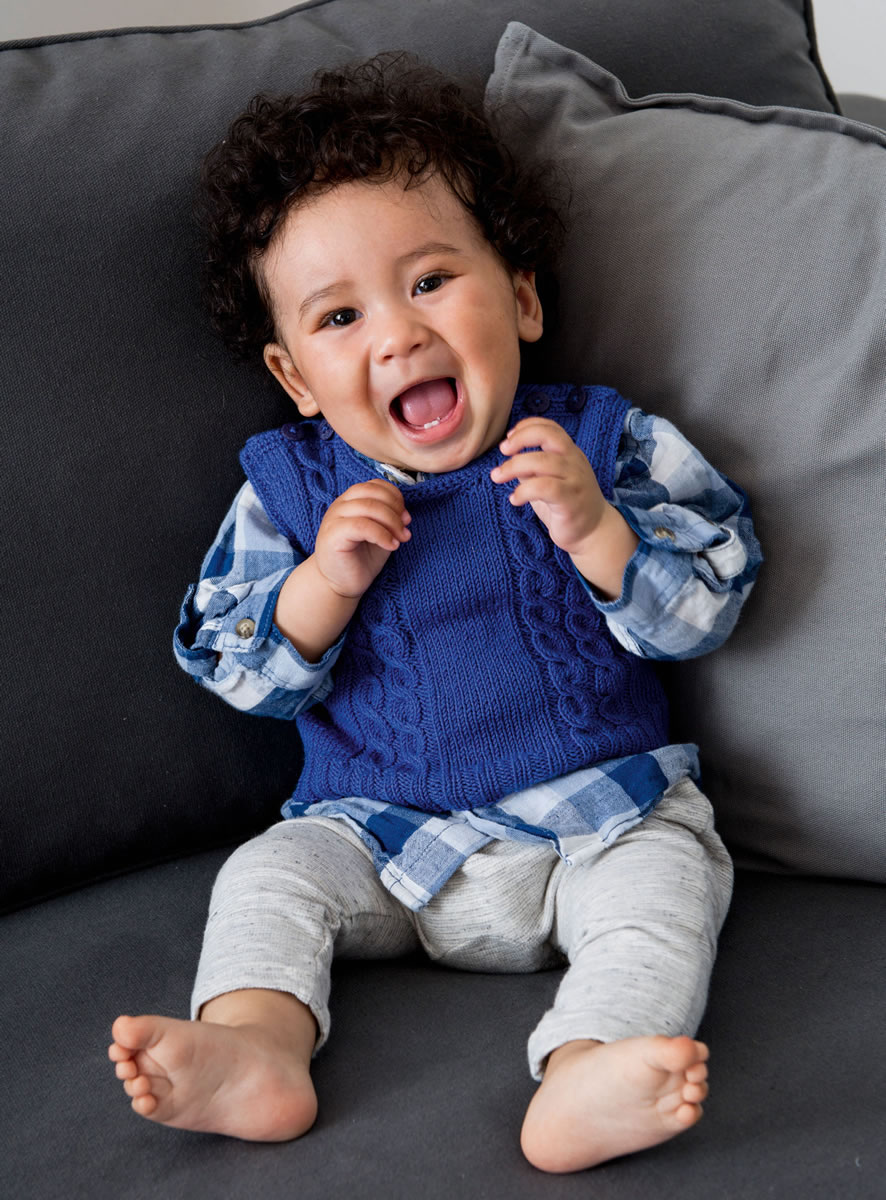 Tolle Farbe, stimmt‘s? Weil dieser Blauton kleine Männer so richtig strahlen lässt, stehen Pullunder, Bommelmütze und eine lässige Strickjacke zur Auswahl. Natürlich in angenehmer, weicher Wolle gestrickt, so auch das Kleidchen mit Streifendesign und passender Hose für kleine Damen, die am liebsten „Pretty in Pink”- Nuancen zur Schau tragen.