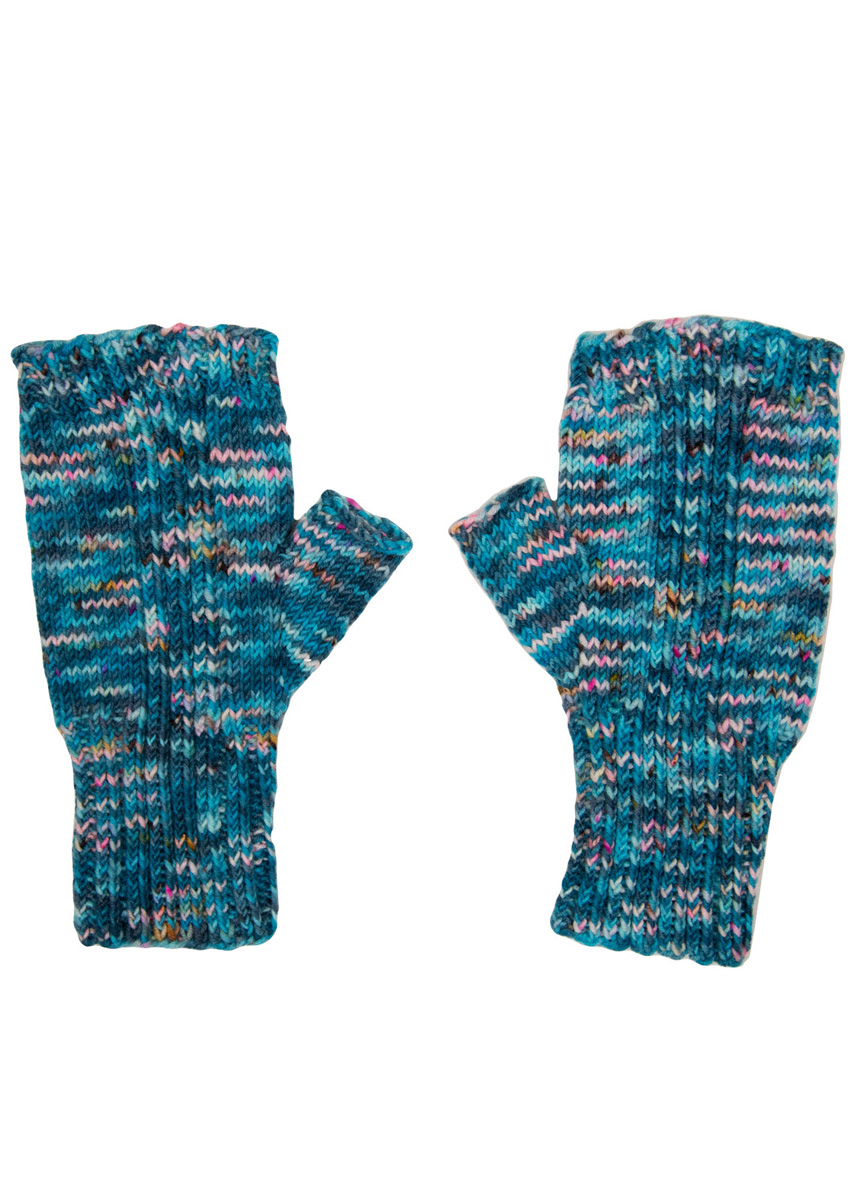 Lana Grossa Cool Wool hand-dyed (100% ren ny ull, löplängd 320 m/100 g), 100 g turkos/mörk petrol/rosa/pink/svartbrun (färg 104), 1 strumpstickor nr. 3,5 och 1 säkerhetsnål.