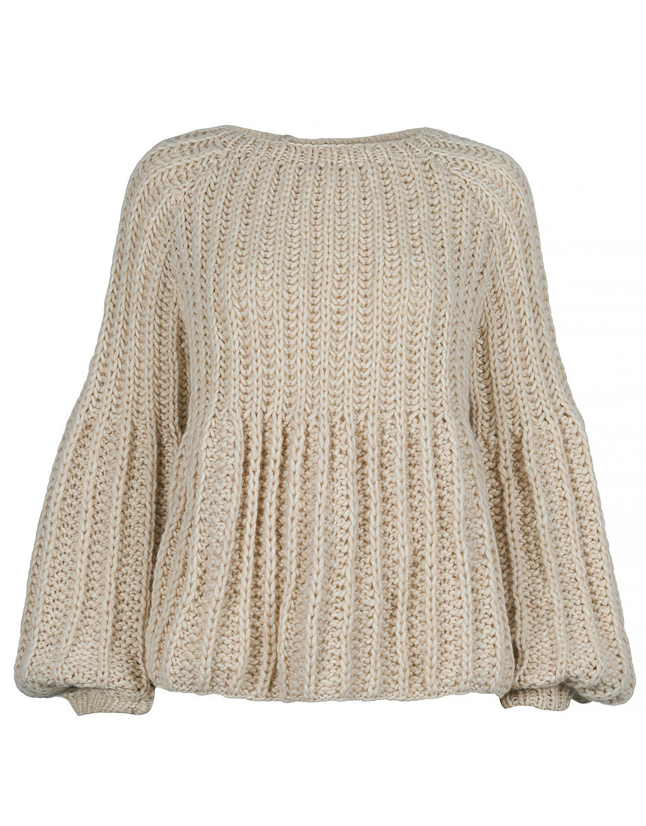 Lana Grossa-kvalitet ”Lala Berlin Lovely Cotton” (75 % ren ny uld (superfin merino), 25 % bomuld, løbelængde = ca. 75 m / 50 gr.): ca. 550 gr rosa (fv 6) eller natur (fv 7), strikkepinde nr. 8 og 10, rundpind nr. 8, 50 cm